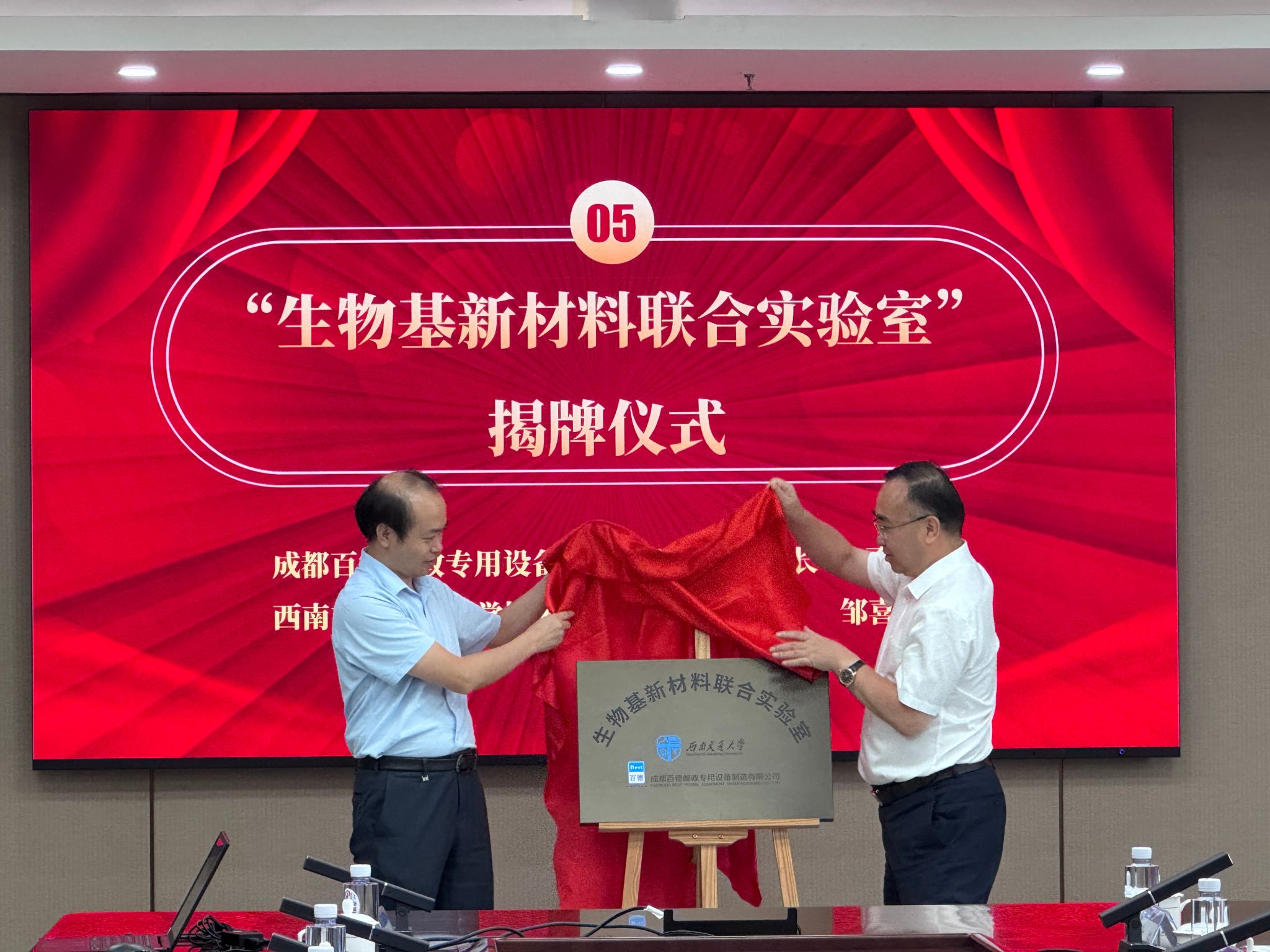 9月26日,西南交通大学与成都百德邮政专用设备制造有限公司(简称成都百德)联合共建的生物基新材料联合实验室揭牌成立。西南交通大学党委常委、副校长王平,成都百德董事长李承刚出席仪式。