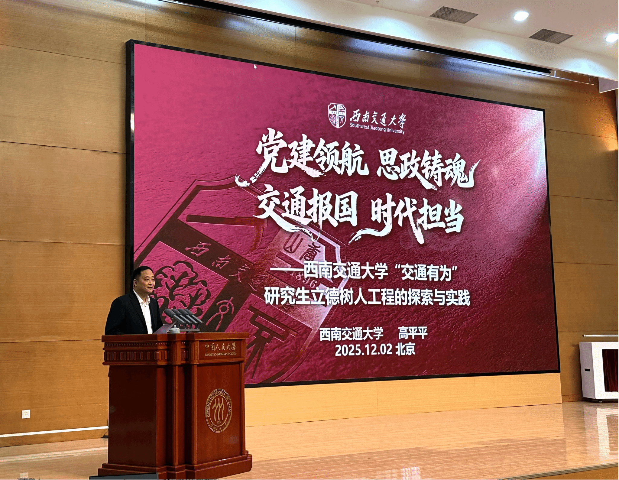 12月2日,新时代全国高校研究生党建和思想政治工作研讨会在中国人民大学召开。会议以“高质量实施立德树人工程,更好发挥研究生党建思政育人实效”为主题,聚焦党建思政工作在培养高层次人才中的关键作用,旨在共谋发展路径、凝聚育人合力。教育部思想政治工作司副司长余先亭、教育部学位与研究生教育发展中心副主任亓彦伟等出席大会并分别作专题报告。西南交通大学党委副书记高平平受邀参会,并在主旨报告环节代表学校作大会报告。