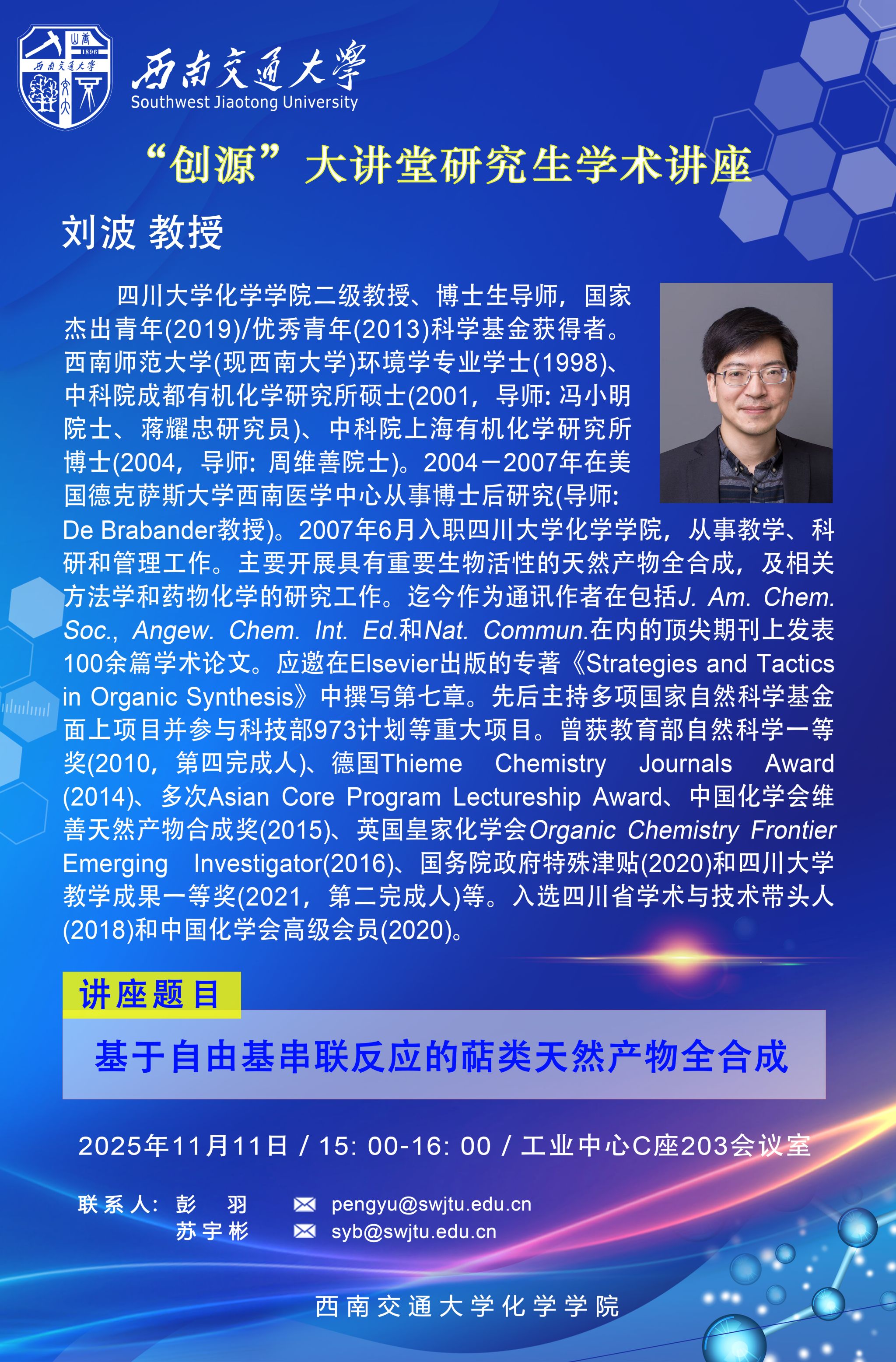 讲座题目:《基于自由基串联反应的萜类天然产物全合成》