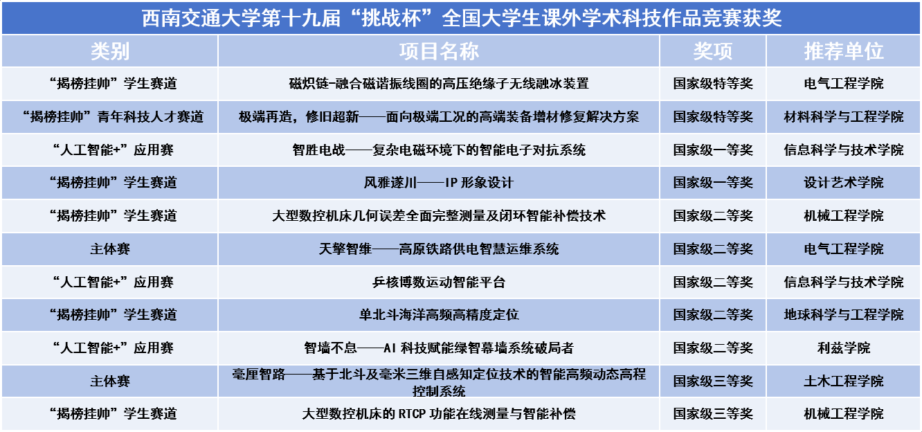 11月3日,第十九届“挑战杯”全国大学生课外学术科技作品竞赛在南京大学圆满落幕。西南交通大学共斩获“挑战杯”主体赛、“揭榜挂帅”擂台赛、“人工智能+”专项赛等各类赛事国家级特等奖2项、一等奖2项、二等奖5项、三等奖2项。土木工程学院推荐项目《毫厘智路——基于北斗及毫米波三维自感知定位技术的智能高频动态高程控制系统》在竞赛中表现出色,作为优秀项目之一在现场完成了落地转化签约。