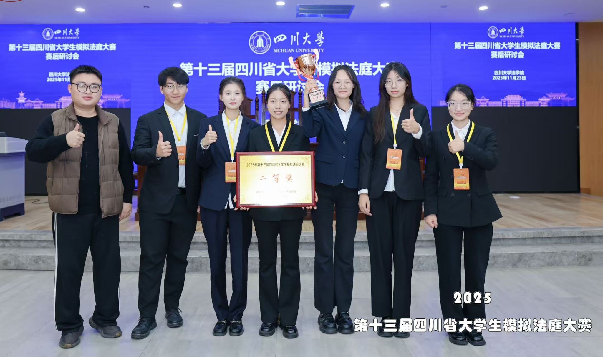 11月22日至23日,由四川省教育厅主办的四川省第十三届大学生模拟法庭大赛在四川大学法学院举行。赛事汇聚了来自川大、西南交大、电子科大、西南财大等共25所大学的法学院系队伍参赛。由学校公共管理学院法学系2023级本科生唐佳坤、万云洁、刘雨晨、张轩铭...