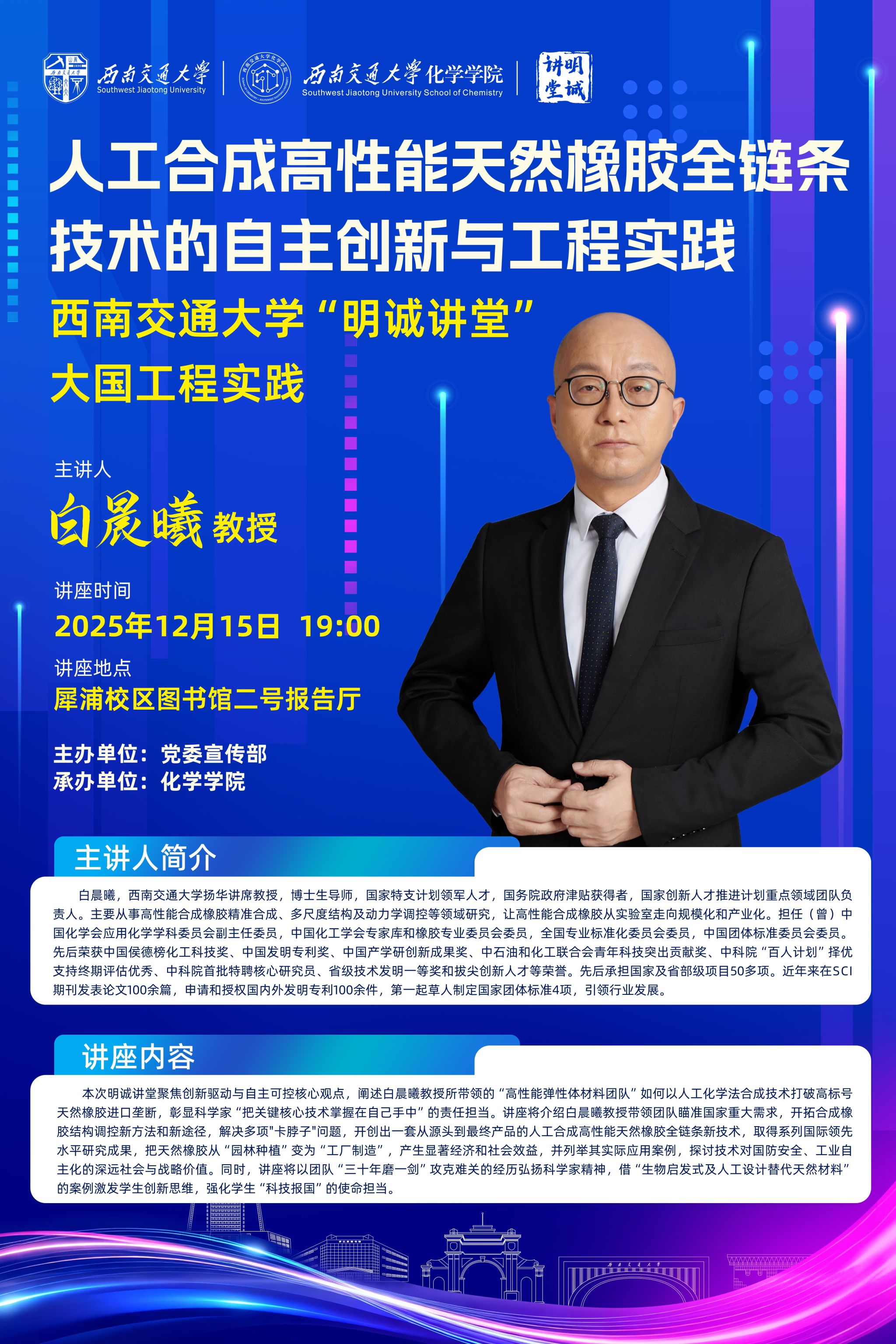 【明诚讲堂】人工合成高性能天然橡胶全链条技术的自主创新与工程实践
