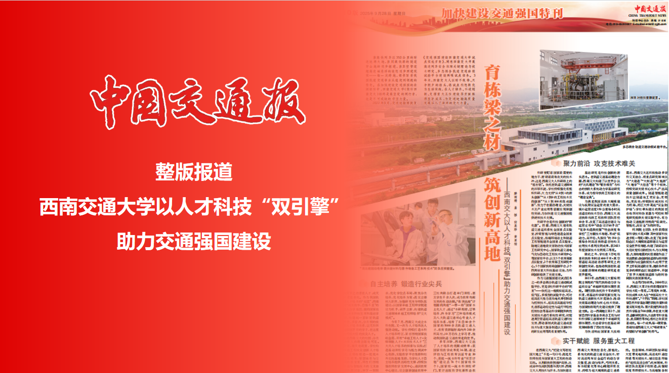 《中国交通报》整版聚焦报道西南交大以人才科技“双引擎...