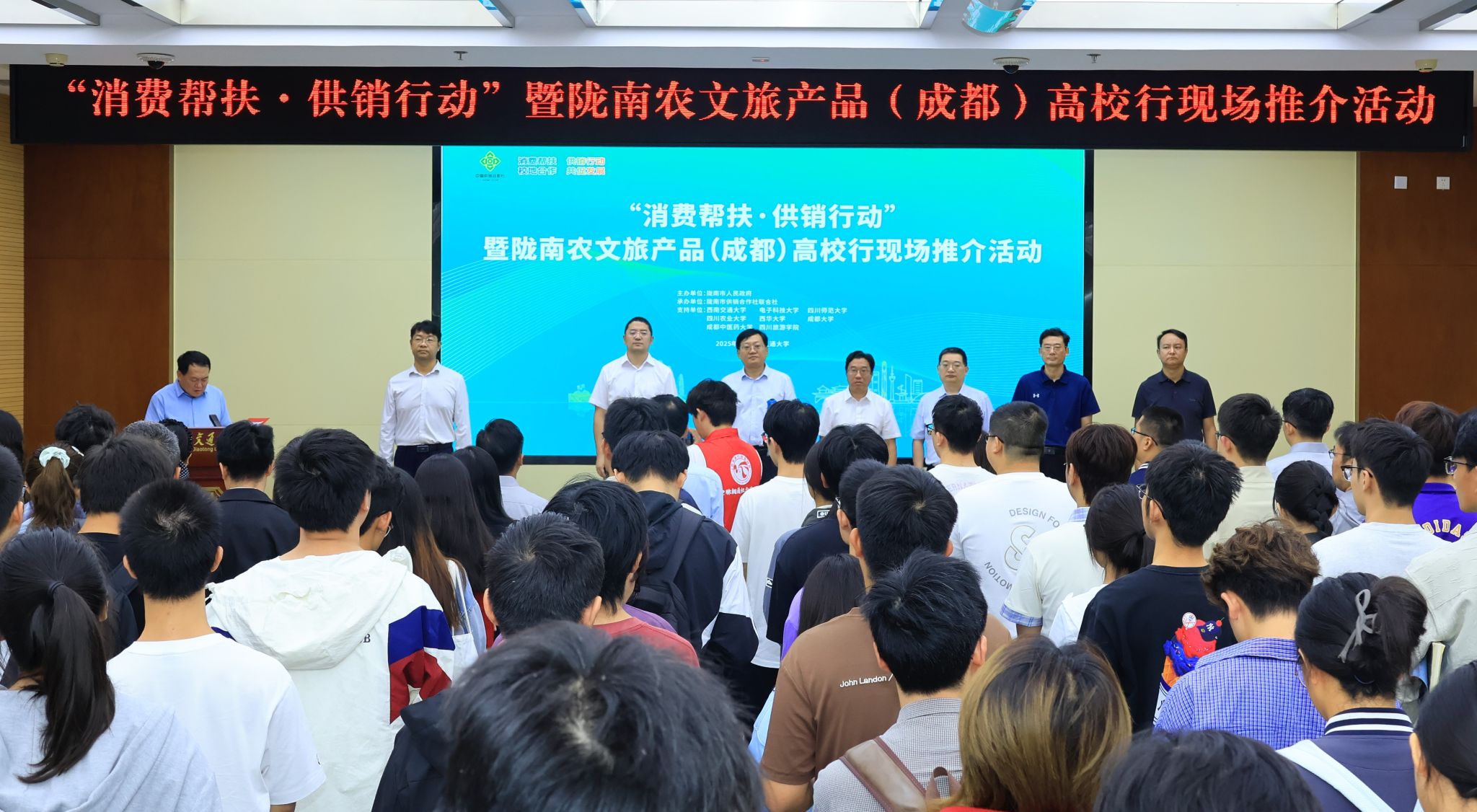 为推动成都高校与陇南校地间的交流与合作,搭建陇南农文旅产品在成都高校的宣传展示平台,促进农文旅产业发展、农民增收,助力乡村振兴,9月22日上午,“消费帮扶·供销行动”暨陇南农文旅产品成都高校行活动在西南交通大学举行。陇南市委常委、副市长柏贞尧出席并宣布活动启动,学校党委常委、副校长晏启祥出席活动并代表学校致辞。学校党委常委、组织部部长朱剑松,共青团四川省委学校部部长徐通出席仪式。活动由陇南市供销联社党组书记、理事会主任田广德主持。