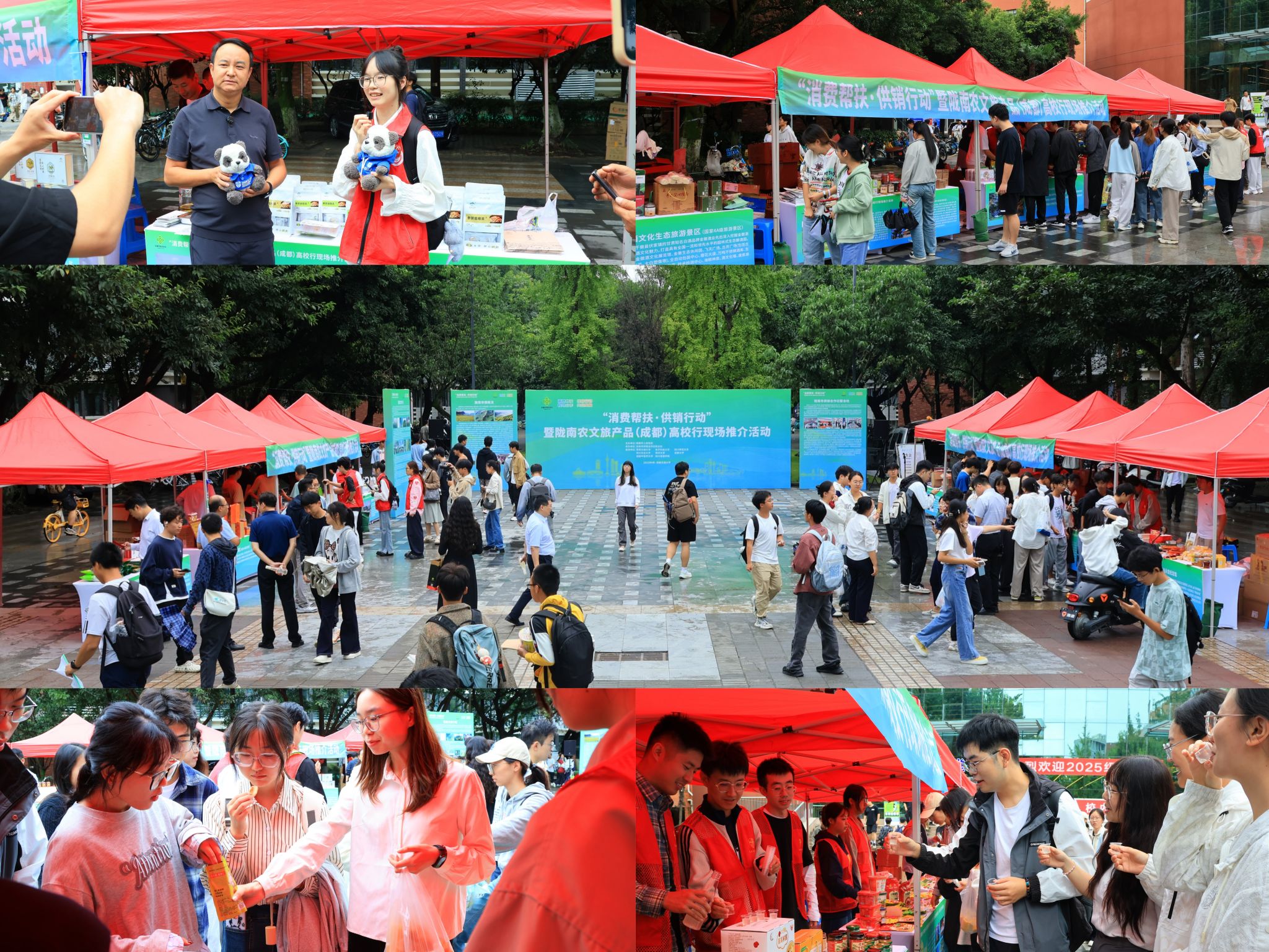 本次活动依托成都强大的文旅消费潜力和庞大的消费市场需求,以西南交通大学等八所高校为重要阵地,在各高校设置展销区,依托供销社的桥梁纽带优势,对陇南特色农产品进行体验销售,并邀请西南交通大学直播助农团队现场直播,通过集中展示推广、线下惠民促销、线上便捷购买等多元形式搭建起陇南农文旅产品走进校园的优质平台,让广大师生真切品味到来自陇南的地道风味与质朴诚意,吸引广大师生到陇南体验极具地域特色的康养旅游、文化旅游、研学旅游。本次陇南农文旅产品成都高校行活动以产品为媒介,以文化为内涵,以教育为延伸,以人才为纽带,不仅为乡村振兴注入了强劲的消费动能和品牌活力,也为高校育人工作提供了丰富的实践素材。