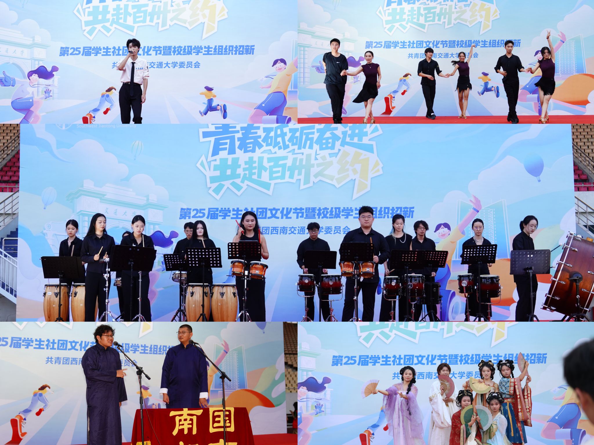 9月25日,西南交通大学“青春砥砺奋进 共赴百卅之约”第二十五届学生社团文化节暨校级学生组织招新活动在犀浦校区和九里校区同时举行。学校100余个学生社团、20余个校级学生组织以及校团委、各二级团组织相关负责老师等逾万人参加活动。