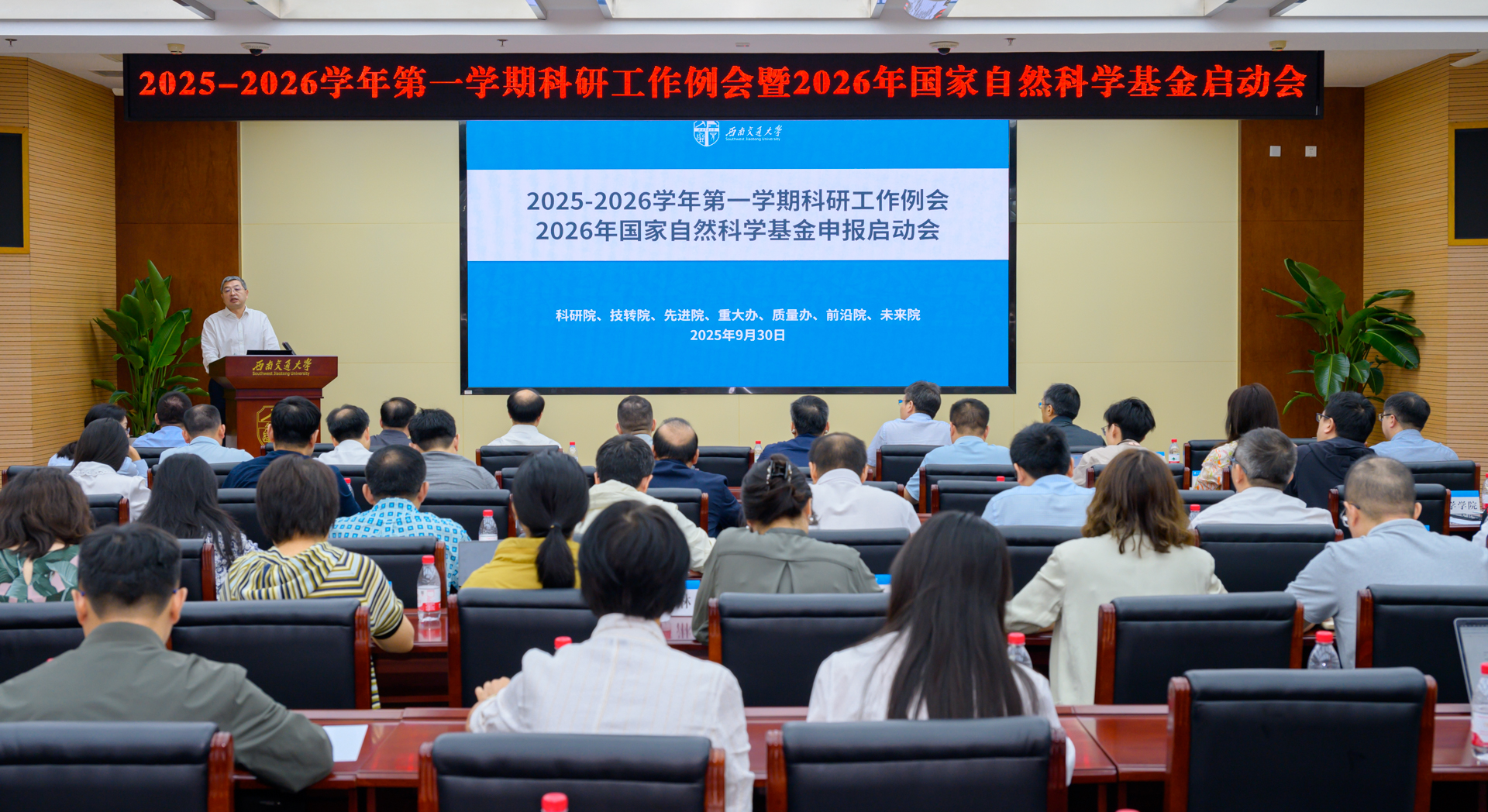 近日,大科研体系(科学技术发展研究院、质量管理办公室、重大工程办公室、先进技术与装备研究院、技术转移研究院、前沿科学研究院、未来技术研究院)在综合楼148会议室举办2025-2026学年第一学期科研工作例会暨2026年国家自然科学基金申报启动会。校党委常委、副校长王平出席会议。