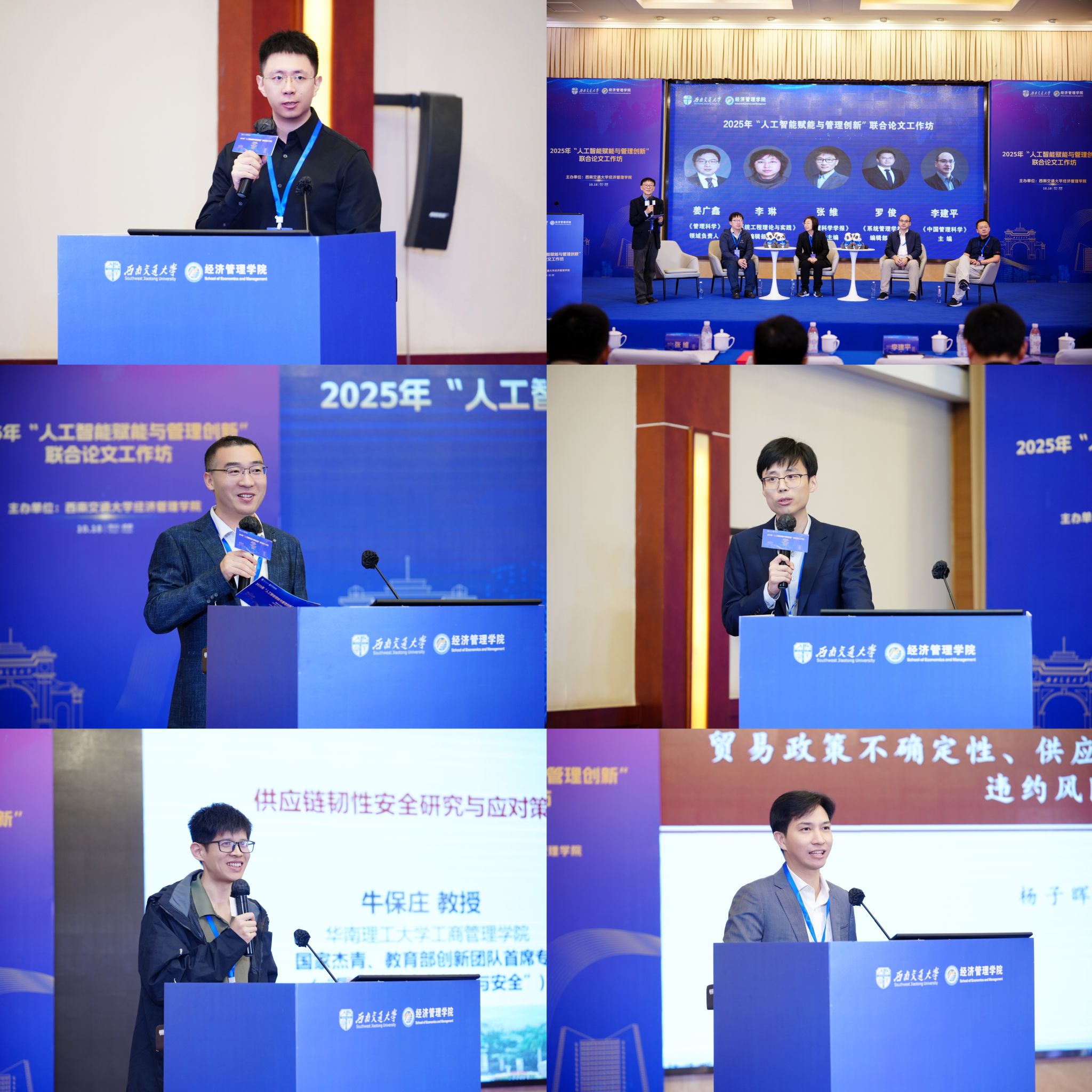 开幕式后,西南交通大学经济管理学院副院长聂佳佳、马锋主持大会主题报告。华南理工大学牛保庄教授以《供应链韧性与安全:学术研究与实践应对》为题,从理论与实务层面系统阐释了供应链风险预警机制的应用与前景,强调了提升供应链韧性的战略意义。上海财经大学杨子晖教授围绕《贸易政策不确定性、供应链暴露网络与全球违约风险》展开深入分析,揭示了贸易政策不确定性对全球供应链及违约风险的传导机制,并提出具有针对性的风险防控建议。