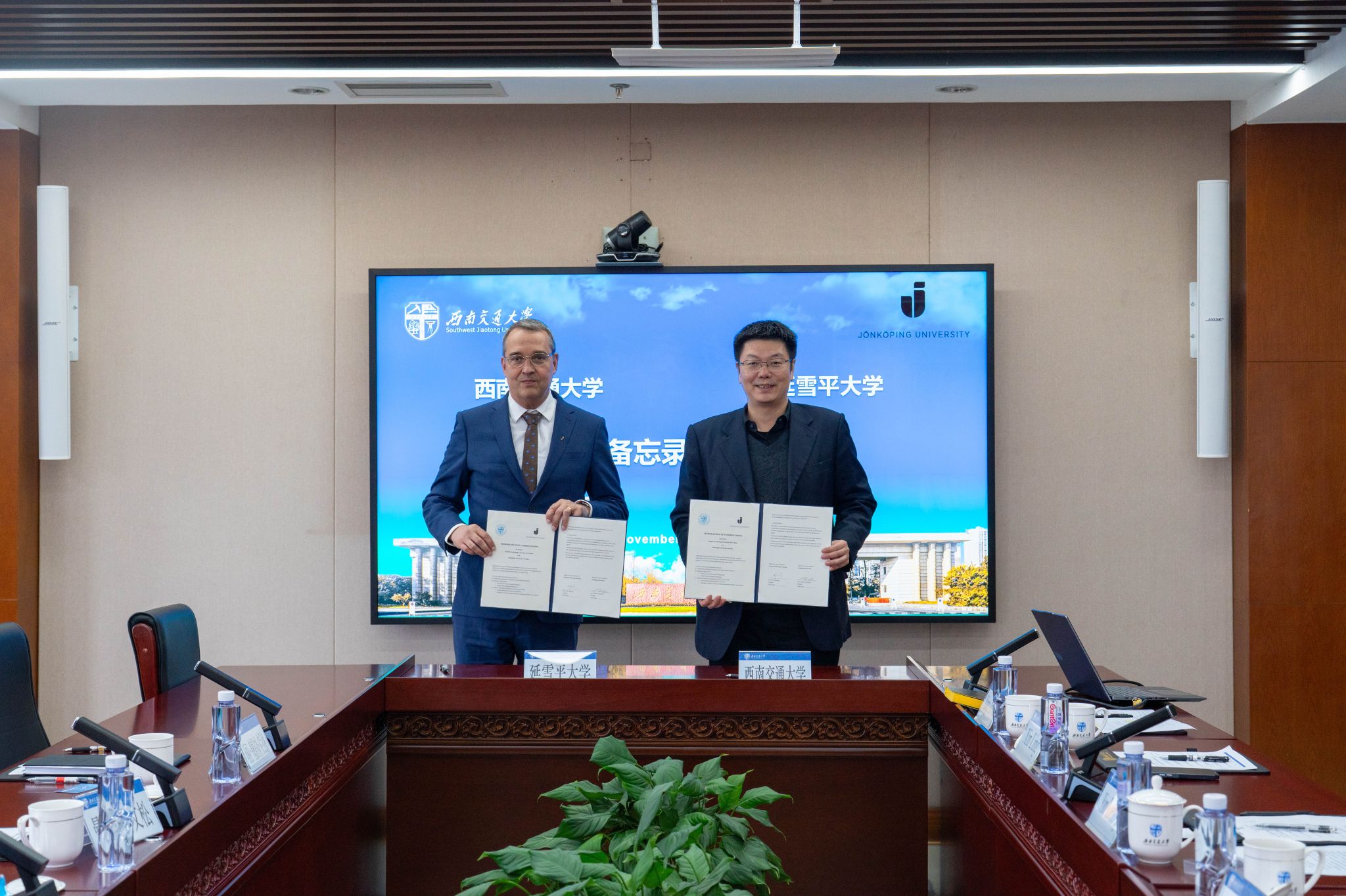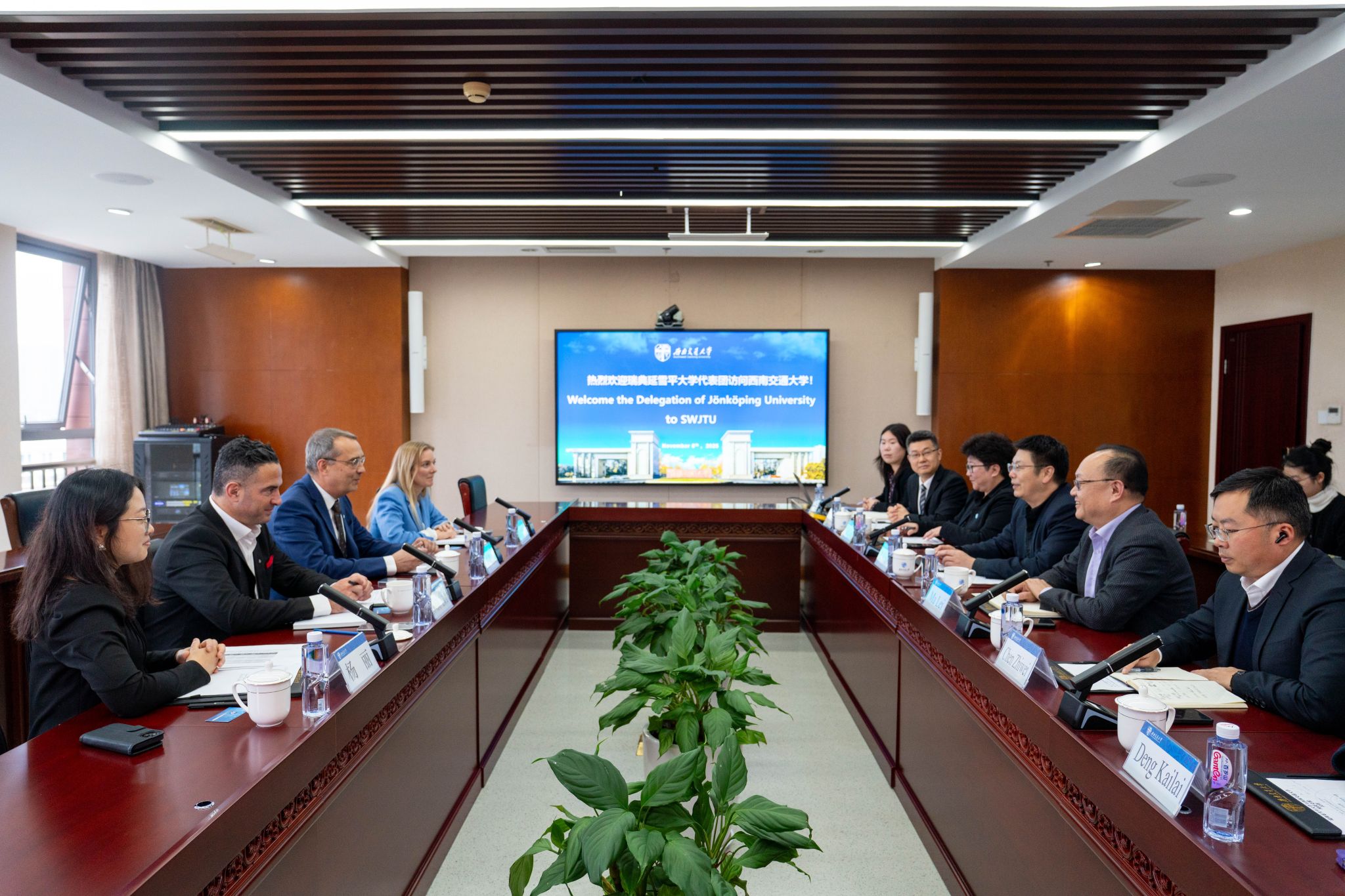 曼斯・斯文森对学校的热情接待表示感谢,并对西南交大在轨道交通和高等教育领域取得的丰硕成果表示赞赏。他简要介绍了延雪平大学在商科创业教育与工程学科交叉融合方面的特色与优势,并表示完全赞同闫学东提出的合作路径,期待与西南交通大学深化合作,共同探索创新人才培养模式,并在双方共同感兴趣的科研领域开展实质性合作。