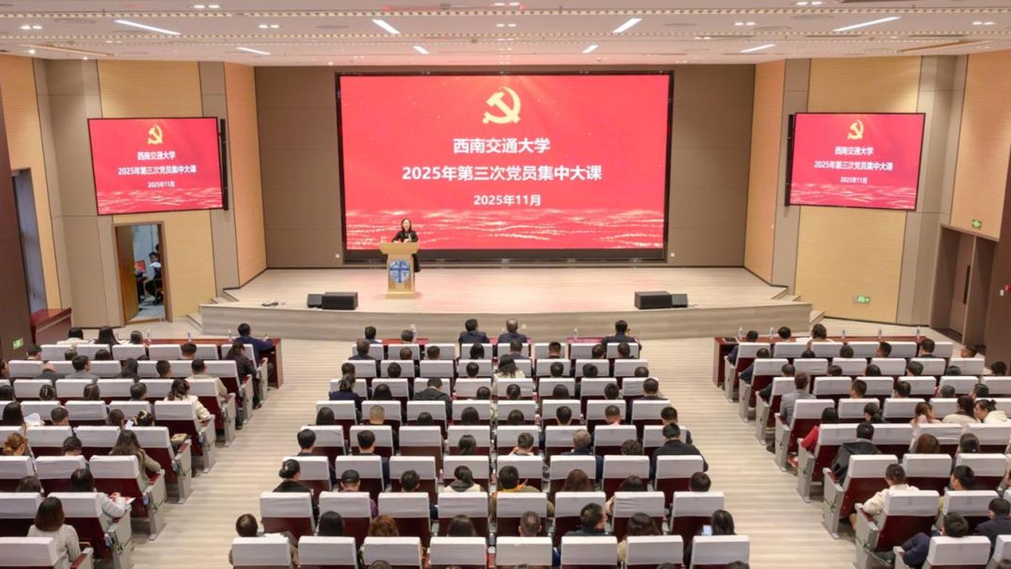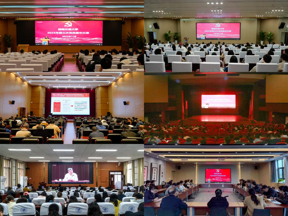 为深入学习贯彻习近平新时代中国特色社会主义思想和习近平总书记关于教育的重要论述,认真贯彻落实全国教育大会精神,11月6日,西南交通大学组织开展2025年党员基本培训第三次集中大课,全校13000余名师生党员分别在主会场和114个分会场,集中观看了教育部党组书记、部长怀进鹏以“深入学习贯彻习近平总书记关于教育的重要论述,落实全国教育大会精神”为主题的专题报告视频。校党委副书记杨爱华主持培训。