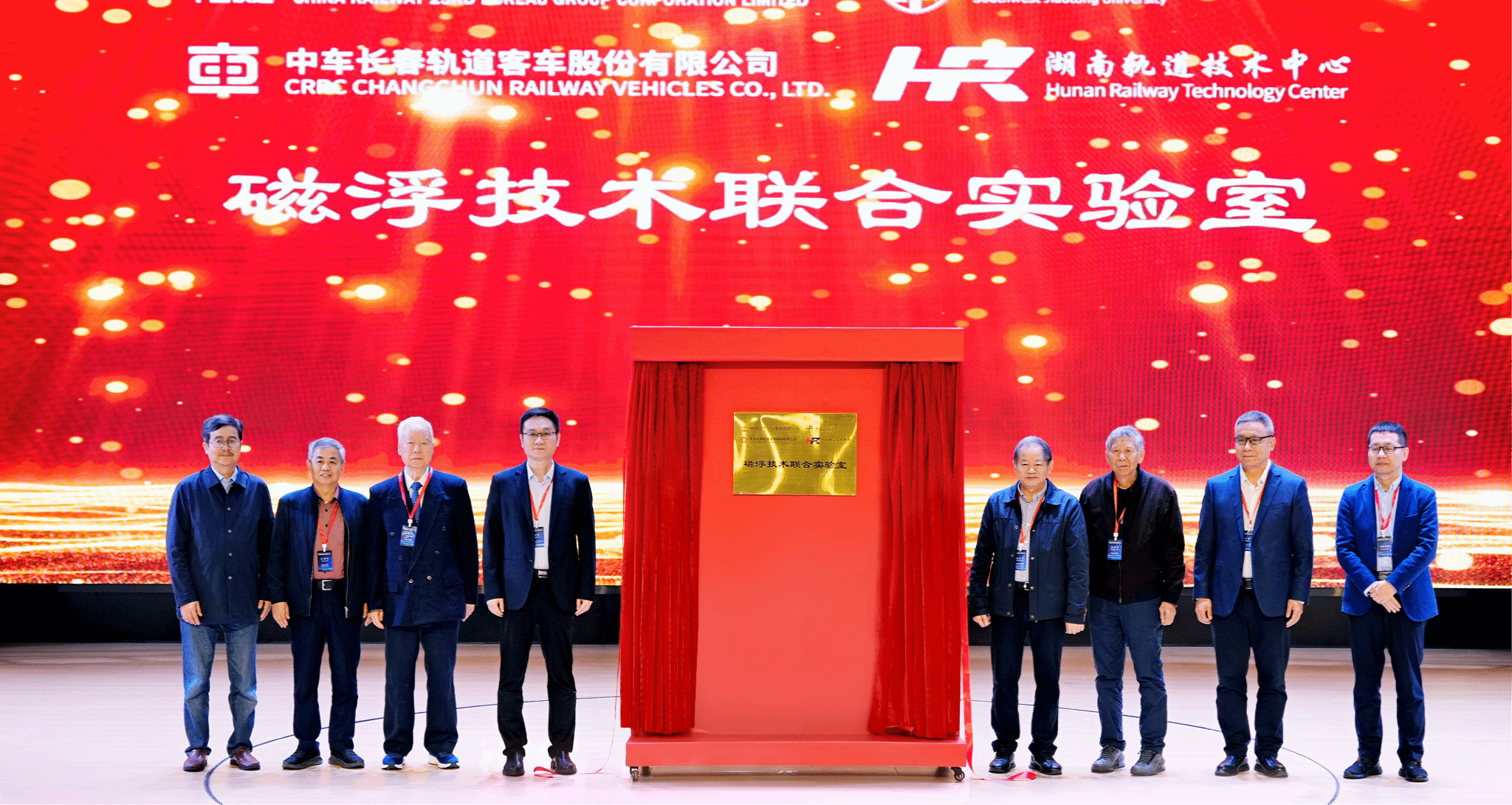会上,由中铁二十三局、西南交通大学、中车长春轨道客车股份公司、湖南轨道技术应用研究中心等单位共同组建的“磁浮技术联合实验室”正式揭牌成立,旨在整合各方在技术研发、装备制造、工程实践、资本运作及人才培养等方面的优势资源,形成产学研用紧密结合的协同创新体系。