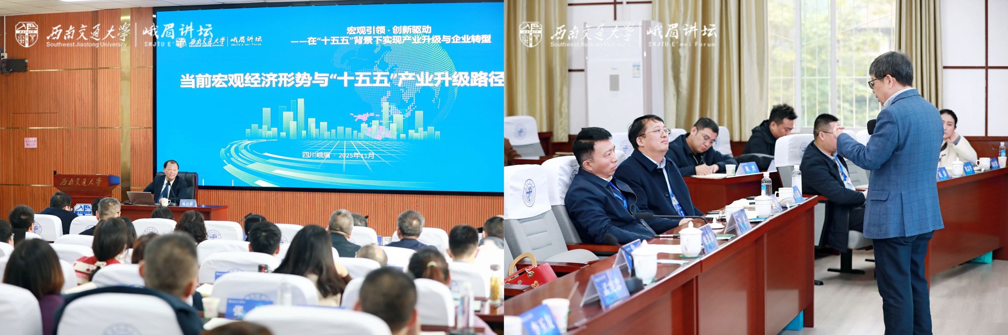 本期讲坛立足国家战略需求,聚焦“百年未有之大变局”背景下的“十五五”宏观经济形势研判与产业发展路径探索,围绕宏观经济趋势与产业升级等重大议题展开深入交流。论坛特邀国家统计局原总经济师、国务院参事室特约研究员姚景源,上海交通大学安泰经济与管理学院教授、战略管理所所长孟宪忠等专家作专题报告。报告环节由西南交通大学经济管理学院原副院长李杰主持。