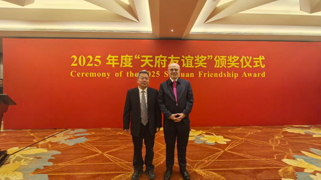 12月2日,2025年度四川省“天府友谊奖”颁奖仪式在蓉举行。四川省委副书记、省长施小琳出席仪式并为获奖者颁奖。西南交大德国籍专家Lutz Plümer教授荣获此项殊荣。副校长周仲荣作为嘉宾出席颁奖仪式。
