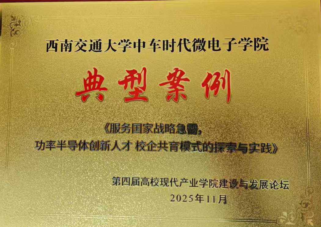 论坛现场公布了15个现代产业学院典型案例。西南交通大学申报的《服务国家战略急需,功率半导体创新人才校企共育模式的探索与实践》成功入选,学校代表受邀参会并获颁典型案例证书。该案例集中展现了学校立足国家功率半导体产业发展需求,通过校企协同构建创新人才培养体系的实践成果,为高校服务关键核心技术领域人才培养提供了可借鉴的经验。