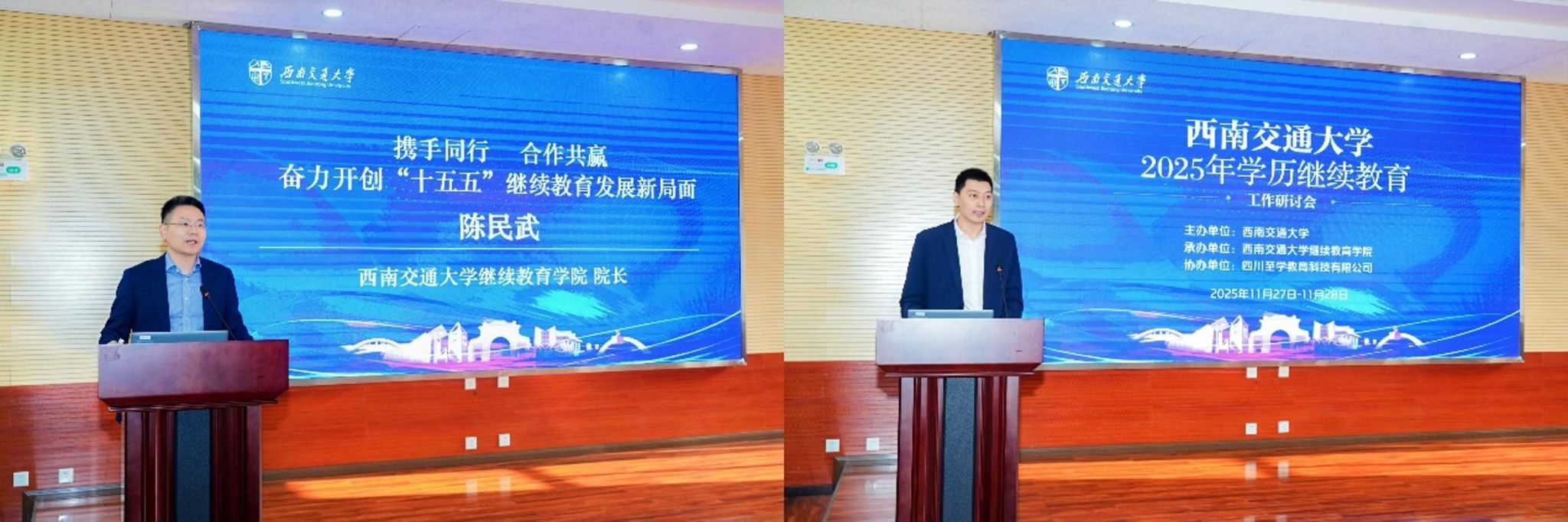 继续教育学院院长陈民武以《携手同行 合作共赢 奋力开创“十五五”继续教育发展新局面》为题作报告。他全面回顾了今年主要工作和办学成效,分析了当前形势与任务要求,介绍了未来发展思路和重点工作,希望在成人高等教育和教育部产业工人求学圆梦计划、自学考试和教育部学习型社会建设重点任务、专业知识能力更新培训班和非学历教育等工作上,与合作单位进一步深化合作内容、拓宽合作路径。