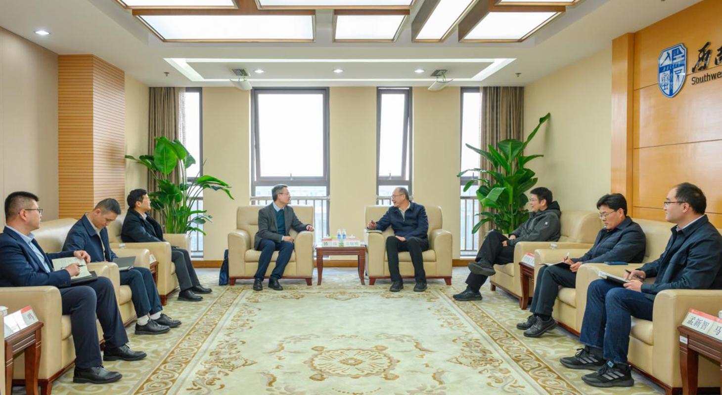 12月10日,三六三医院党委书记陈伟、院长李满一行来校调研,学校党委书记余敏明、校长闫学东在犀浦校区综合楼612会议室会见陈伟一行。