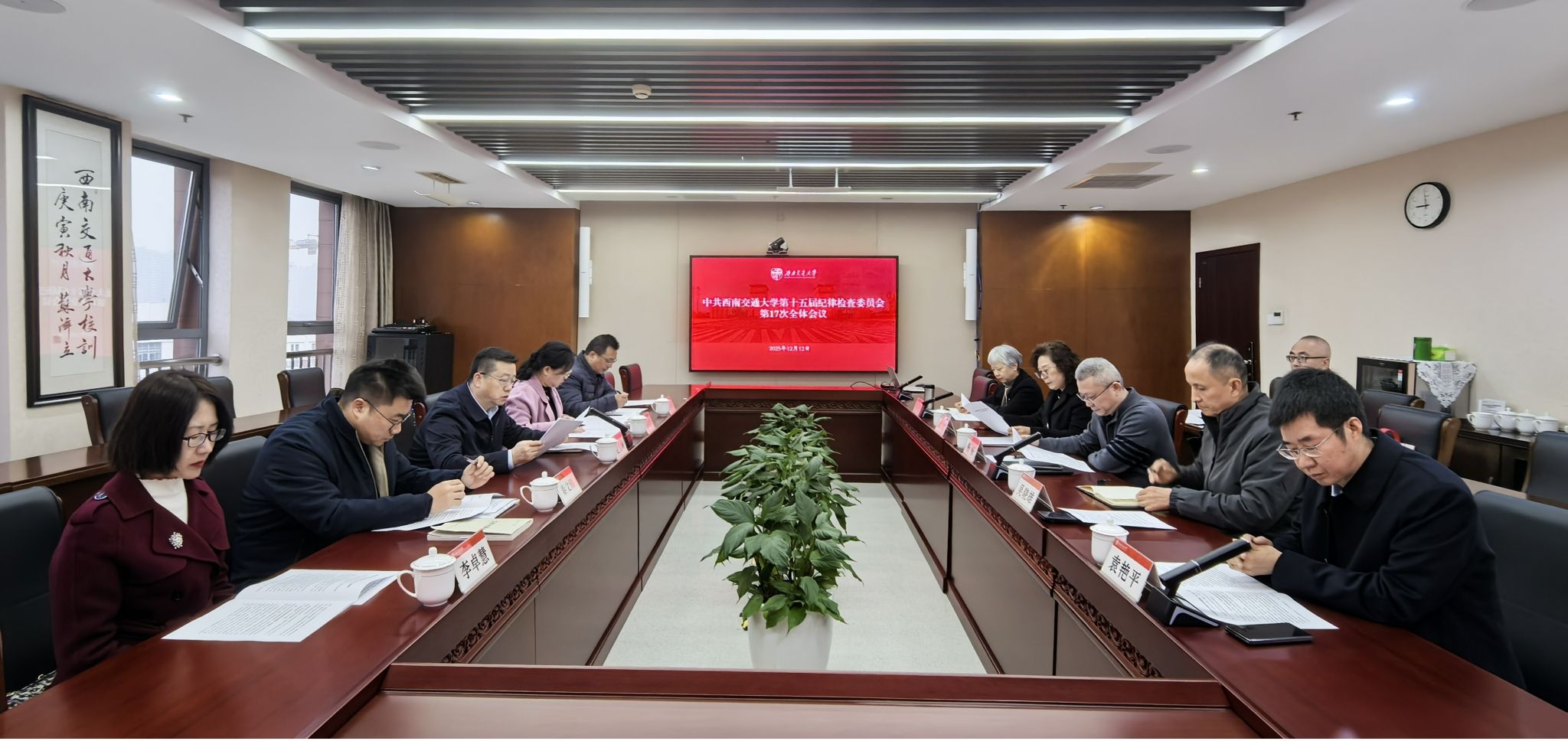 12月12日上午,中共西南交通大学第十五届纪律检查委员会在犀浦校区综合楼611会议室召开第十七次全体会议。校党委副书记、纪委书记夏玉峰同志主持会议,全体在校纪委委员出席会议。