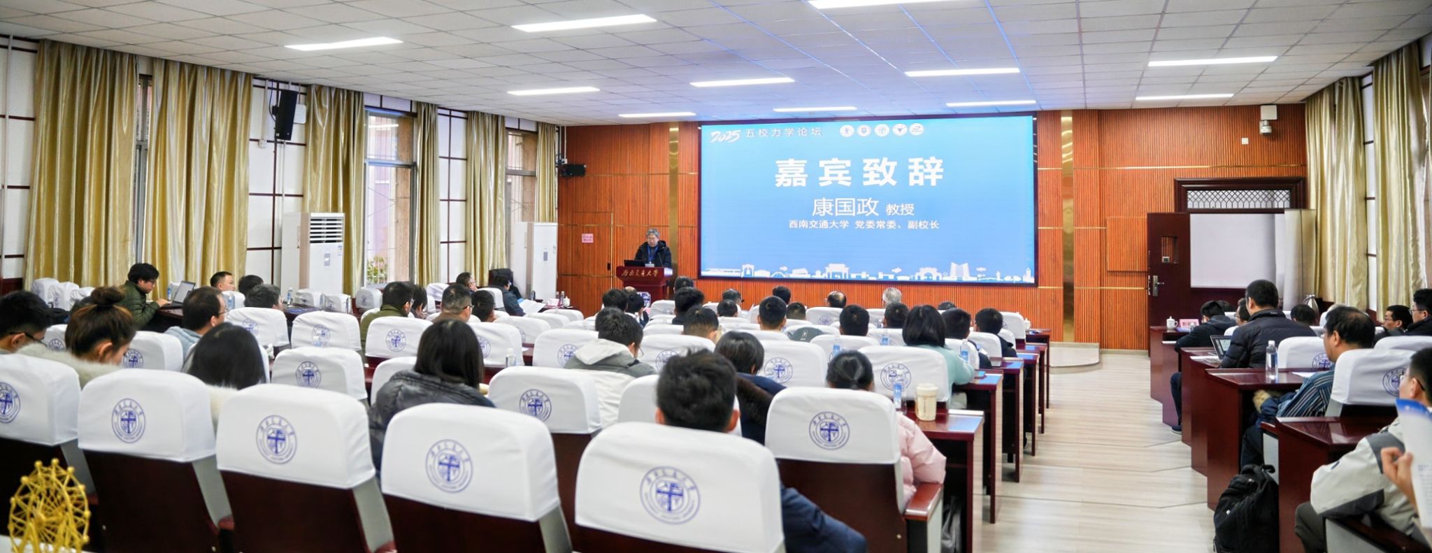 近日,由四川省力学学会主办,西南交通大学力学与航空航天学院承办,北京交通大学、天津大学、浙江大学、华中科技大学联合协办的2025年五校力学论坛,在西南交通大学峨眉校区802报告厅开幕。西南交通大学党委常委、副校长康国政出席开幕式。开幕式由西南交通大学力学与航空航天学院院长李翔宇主持。