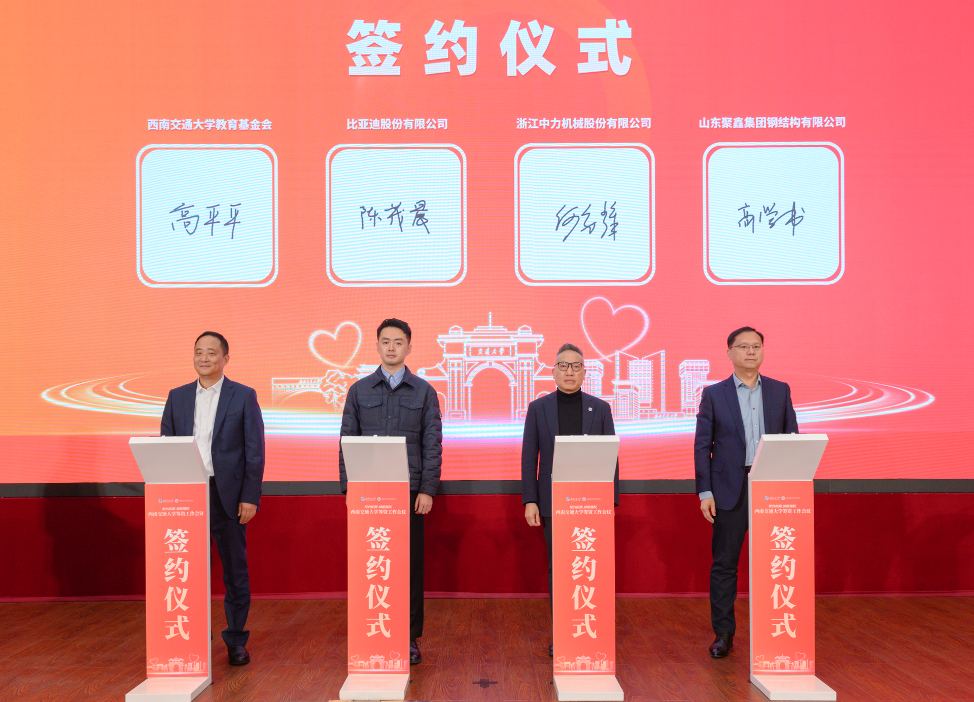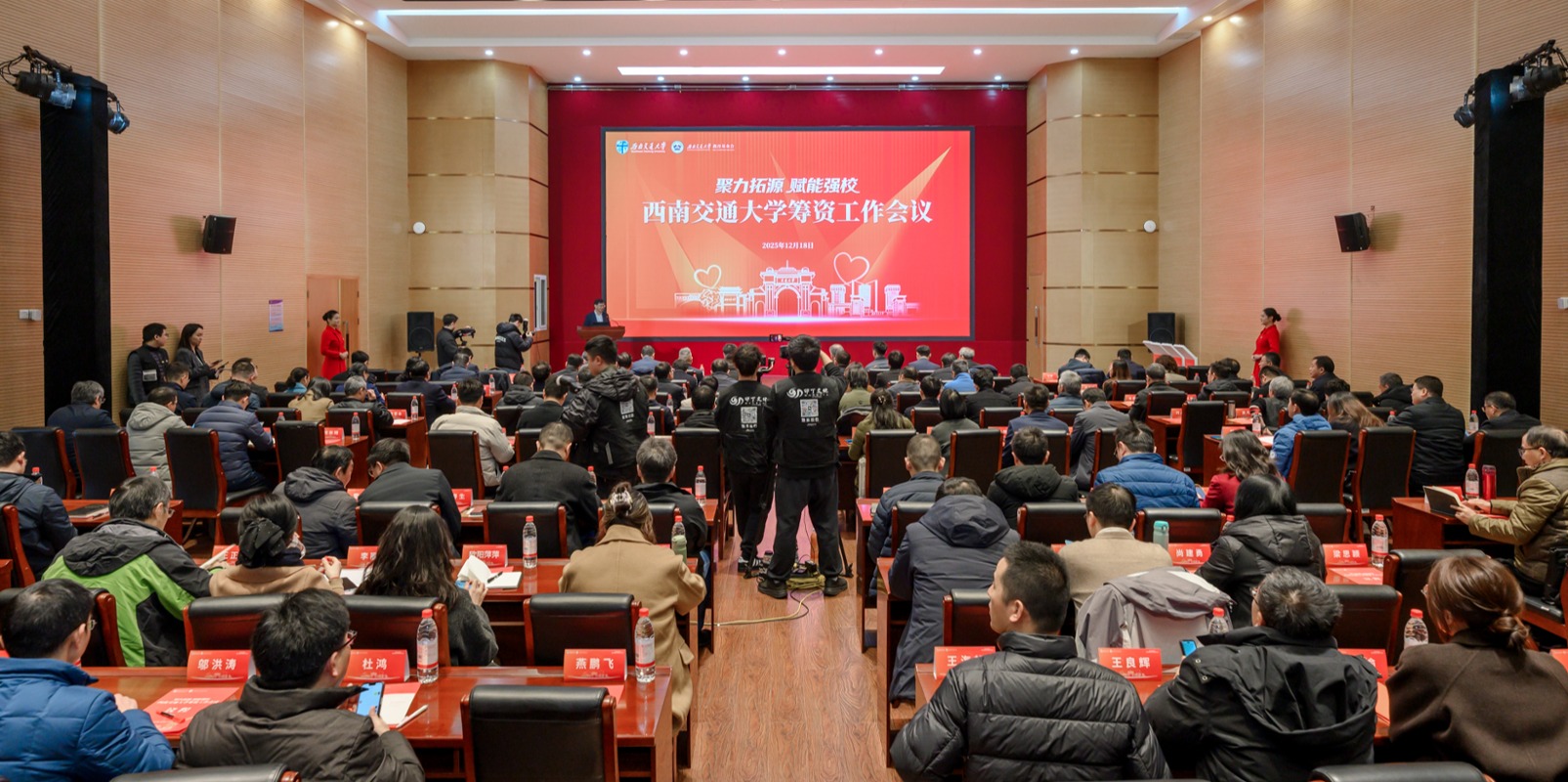 12月18日,“聚力拓源 赋能强校”西南交通大学筹资工作会议在犀浦校区交运楼418会议室举行。校党委书记余敏明,校长闫学东,党委副书记、校教育基金会理事长高平平,副校长周仲荣,党委常委、副校长康国政,党委常委、统战部部长汪铮,党委常委、组织部部长朱剑松,校长助理宋新,比亚迪集团代表招聘经理陈茂晨,浙江中力机械股份有限公司董事长、1981级起重运输机械专业校友何金辉,山东聚鑫集团钢结构有限公司董事长、1997级机械工程专业校友高学书出席会议。党委常委、副校长何正友主持会议。
