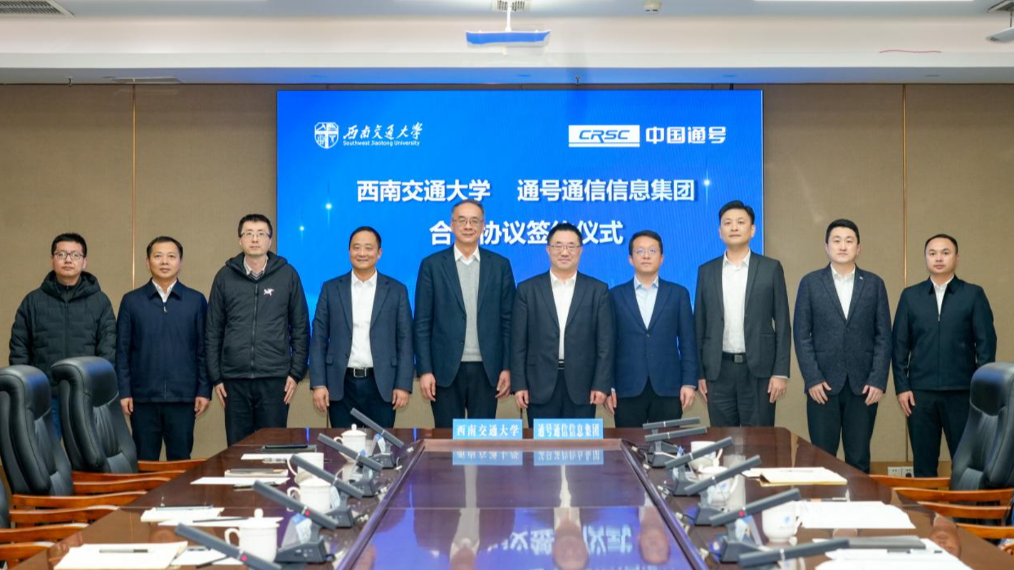 12月19日,西南交通大学与通号通信信息集团有限公司在犀浦校区综合楼603会议室举行合作协议签约仪式。通号通信信息集团有限公司党委书记、董事长牛建华,校党委书记余敏明,党委副书记高平平出席签约仪式。