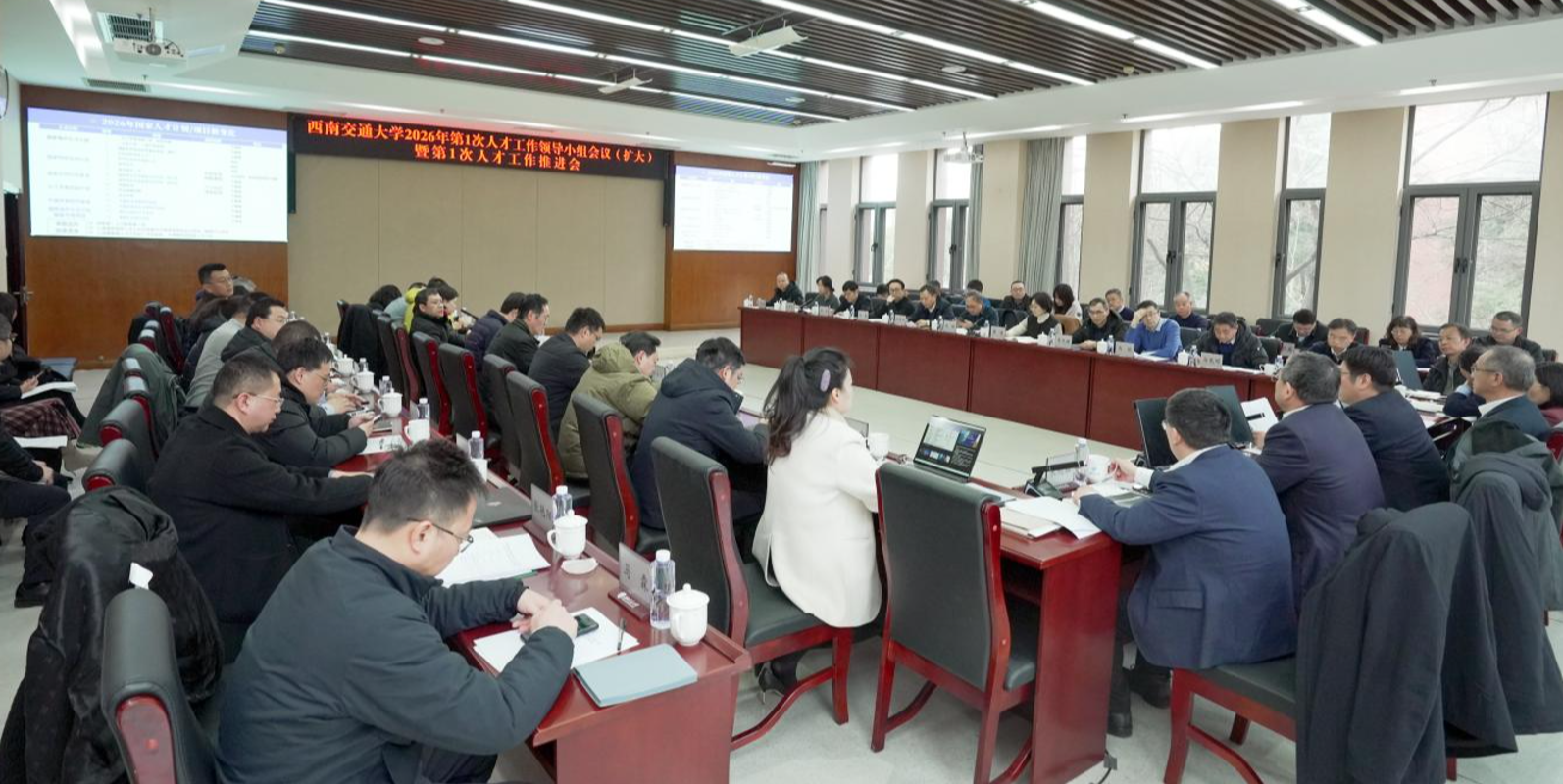 1月21日,西南交通大学2026年第1次人才工作推进会在犀浦校区综合楼272会议室举行。党委书记余敏明,校长闫学东,党委副书记杨爱华,党委常委、副校长晏启祥,党委常委、组织部部长兼人才工作办公室主任朱剑松出席会议。党委常委、副校长王平主持会议。