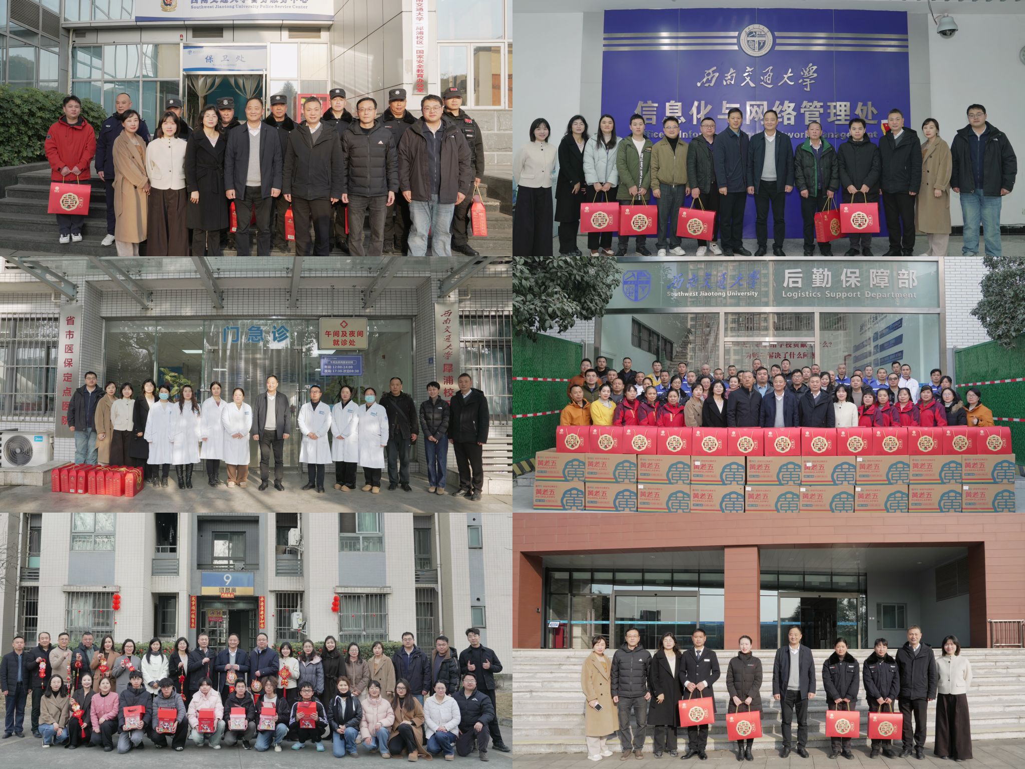 在犀浦校区,高平平一行先后前往保卫处、信息化与网络管理处、后勤保障部、校医院、鸿哲斋、综合楼门岗及总值班室,实地查看假期校园安全保卫、后勤服务等方面工作情况,亲切慰问值守在一线的校卫队员、后勤员工、医务人员、值班教职工以及留校本科生,并向大家送上新春祝福和学校准备的“春节大礼包”。高平平对大家在假期中的辛勤付出表示感谢,希望大家继续以认真负责的态度做好各项工作,全力维护校园安全稳定,保障学校正常运转。