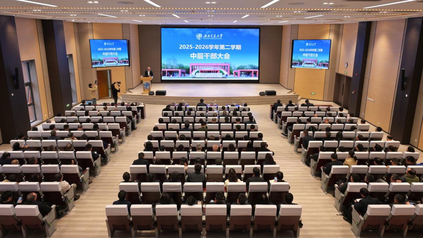 3月12日,学校召开2025-2026学年第二学期中层干部大会。校长闫学东总结回顾2025年学校工作,作“十五五”发展战略分析,并部署2026年重点工作。党委书记余敏明主持会议并讲话。全体在校校领导、校党委委员、纪委委员、各单位中层干部参加会议。