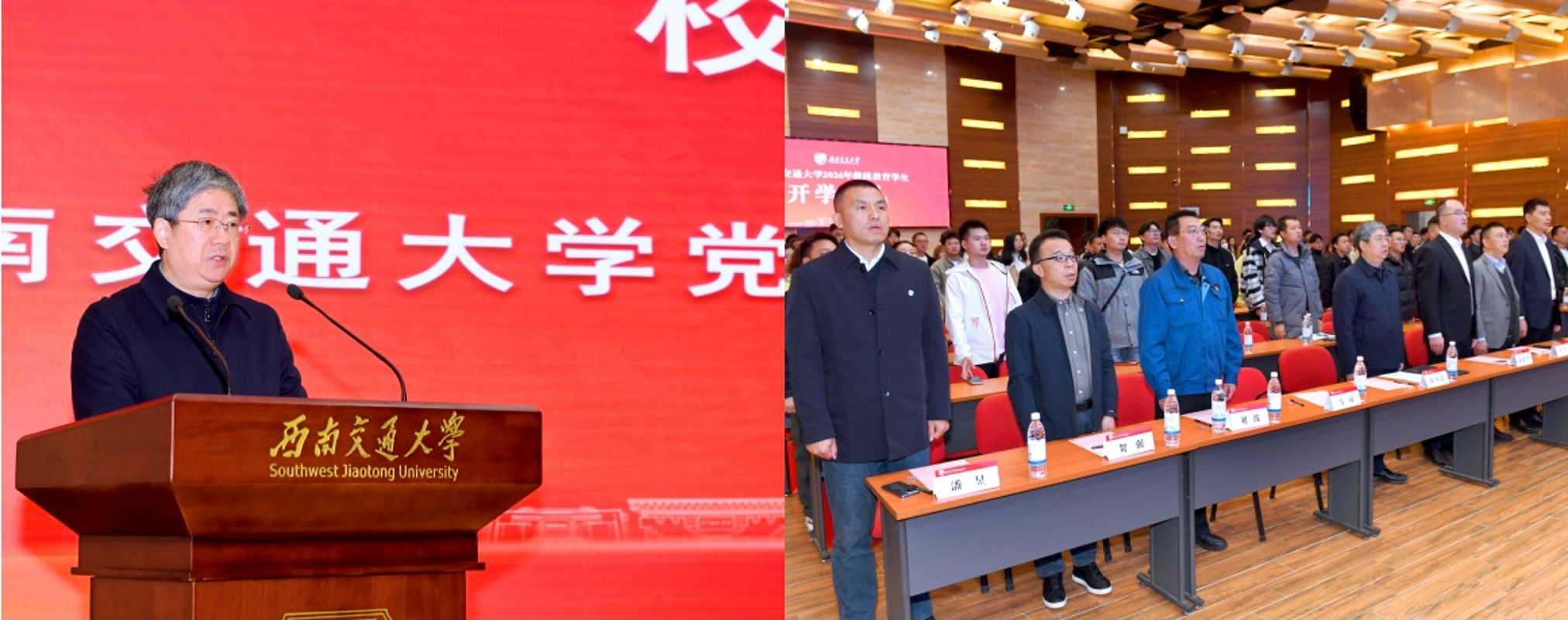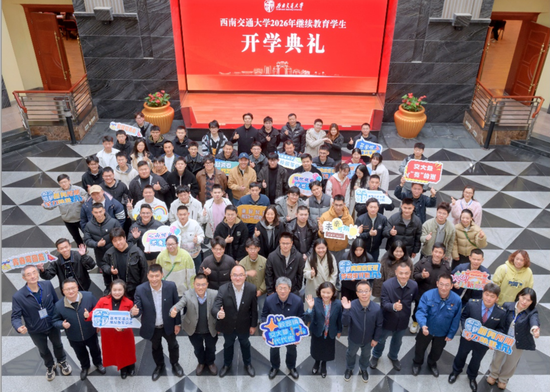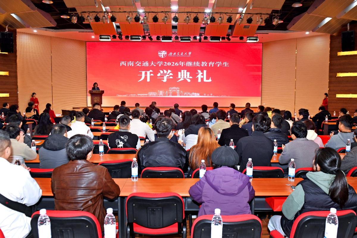 3月14日上午,西南交通大学2026年继续教育学生开学典礼以线上线下相结合的方式举行。西南交通大学党委常委、副校长康国政,中国铁路济南局集团有限公司青岛动车段首席技师、全国劳动模范刘波出席典礼。继续教育学院党总支书记马琼主持典礼。