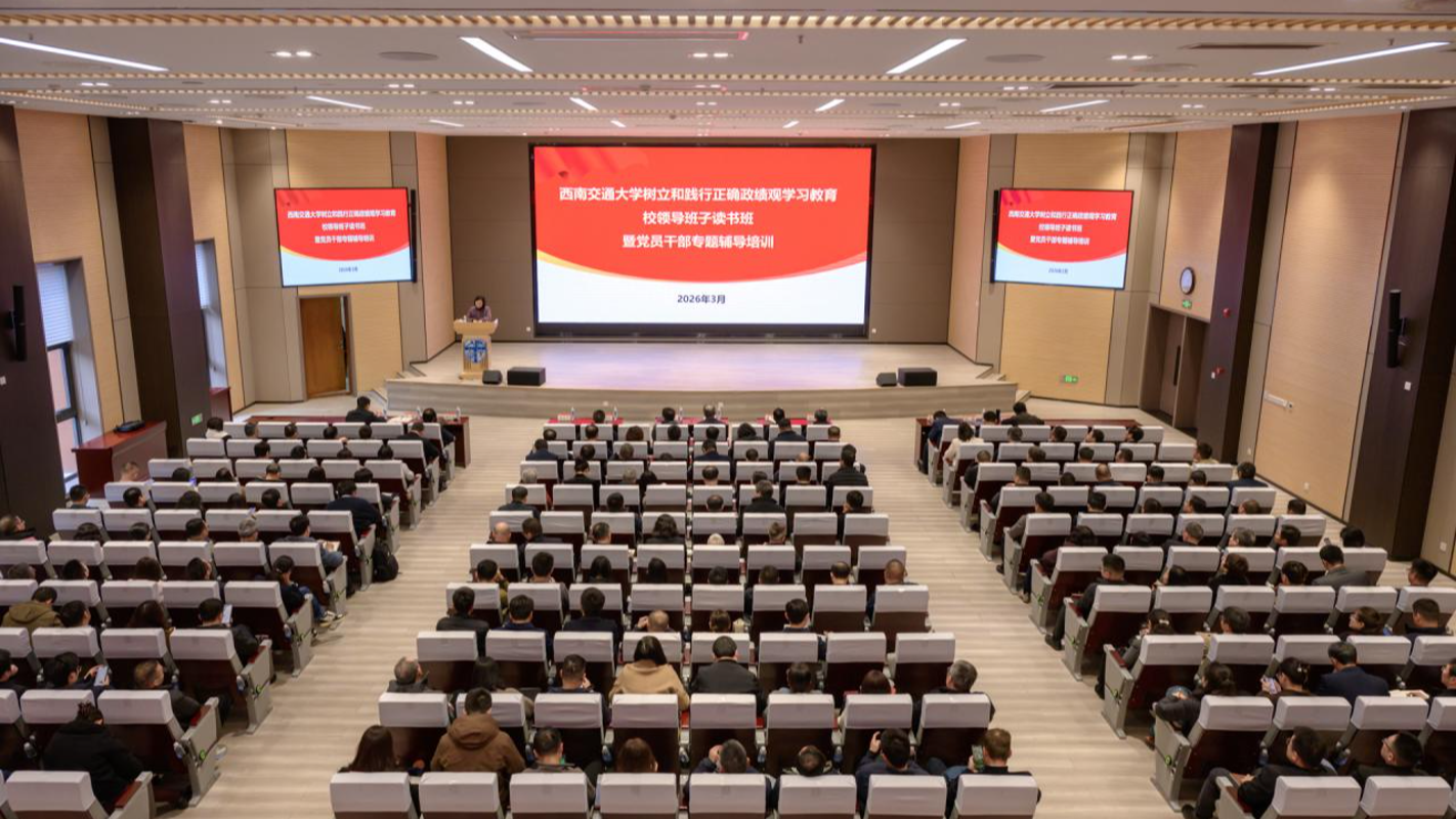 3月17日,西南交通大学树立和践行正确政绩观学习教育校领导班子读书班暨党员干部专题辅导培训在犀浦校区中力报告厅举行。中央马克思主义理论研究和建设工程首席专家张国祚教授作专题报告。全体在校校领导、党委常委、校长助理,中层领导干部,以及教工党支部书记代表参加学习。党委副书记杨爱华主持会议。