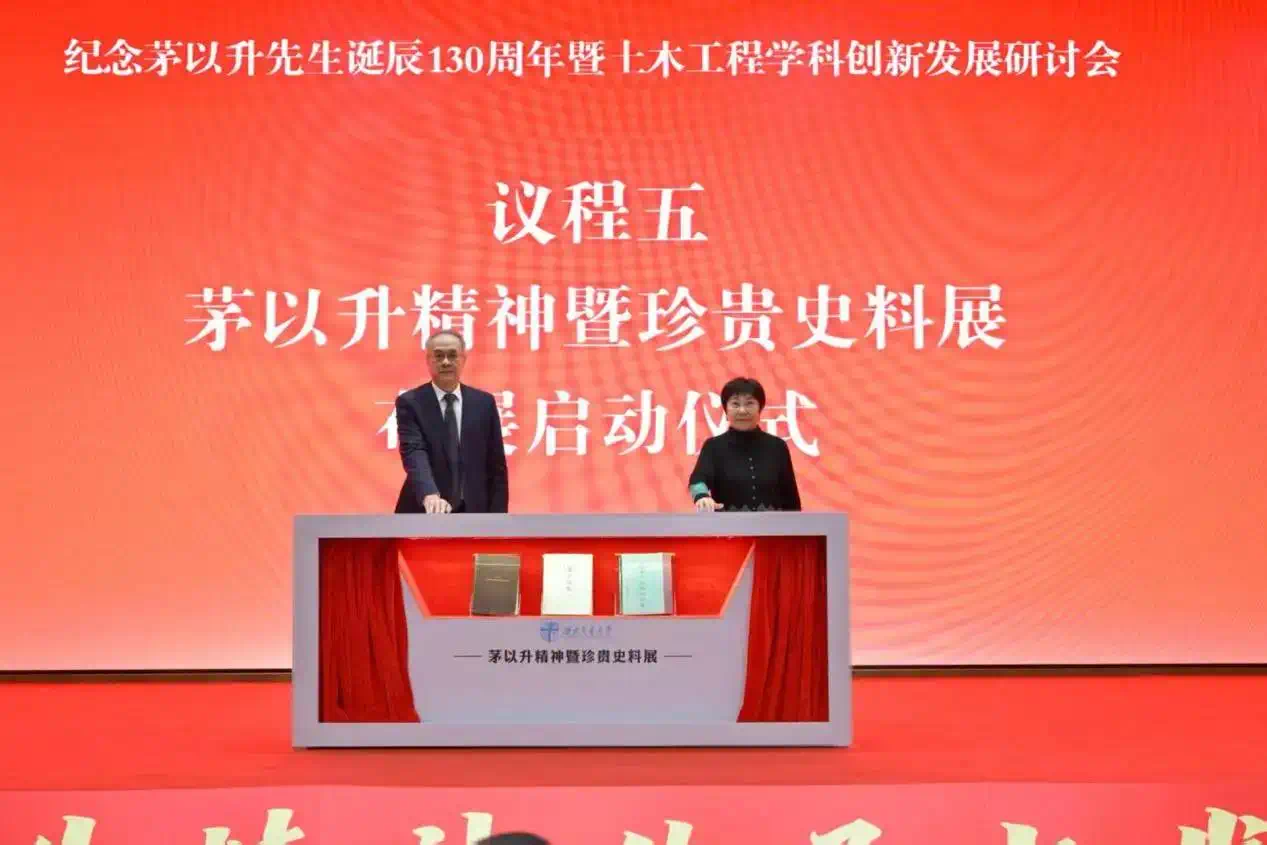 现场启动了茅以升精神暨珍贵史料展,展示茅以升先生“博士论文答辩本原件”“康奈尔大学硕士论文原件”和“《钱塘江建桥计划书》原件”三本珍贵史料,其中博士论文答辩本为国内孤本,也是首次在国内公开展示。这些文献见证并辉映着茅以升先生求学报国、笃行建功的光辉一生,具有独一无二的学术价值与精神力量。后续,以茅以升珍贵史料为核心的“茅以升精神暨珍贵史料展”将在西南交通大学东部校区正式实地开展。