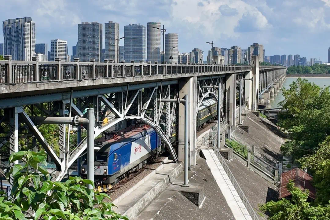 2025年7月23日,一列火车驶过钱塘江大桥。中新社记者 钱晨菲 摄