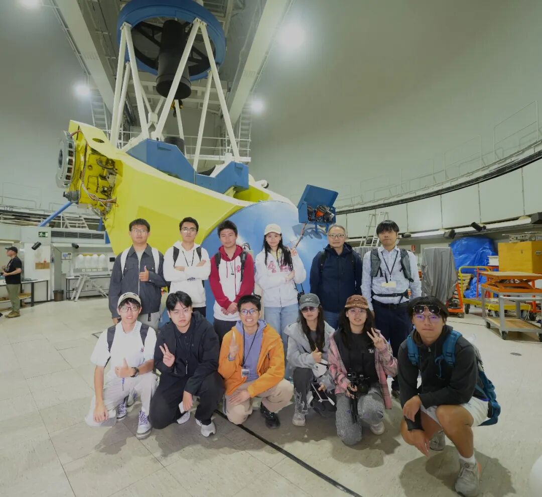南京大学学子在卡拉尔阿尔托天文台2.2米望远镜前。