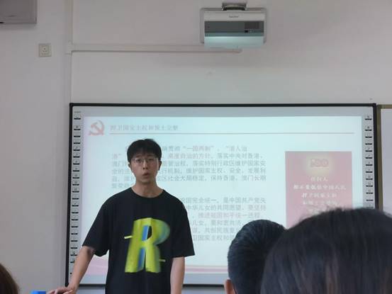 学习从全面学习讲话的重要内容、准确把握讲话丰富内涵、深入领会讲话的重大意义这三个方面切入。首先在全面学习讲话的重要内容中,我们深刻了解了一个庄严、三个深刻改革、一个主题、九个必须等深刻精神内涵。在讲述其中的捍卫国家主权和领土完整这一部分时,主讲人何玺华还通过举例子的形式让支部成员更加感同身受。