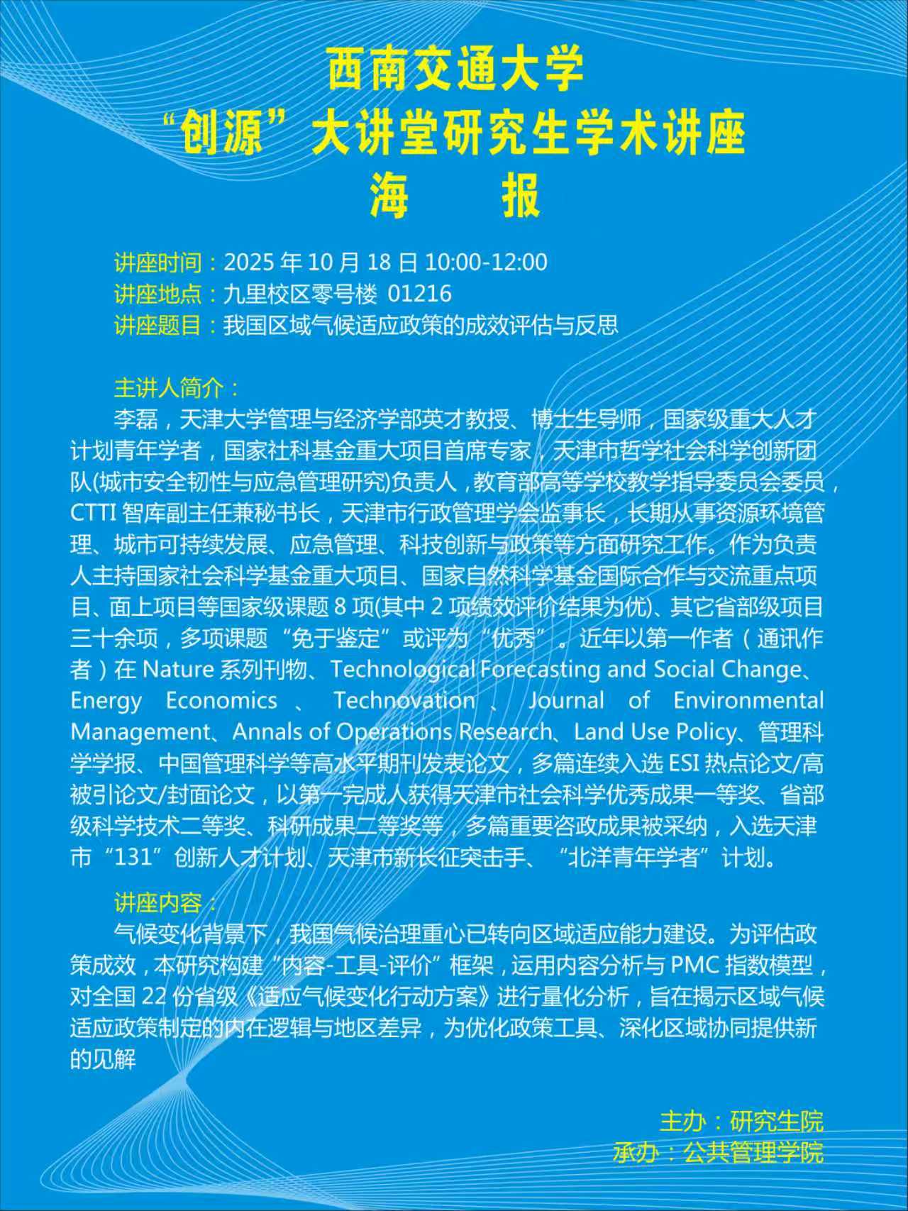 讲座题目:我国区域气候适应政策的成效评估与反思