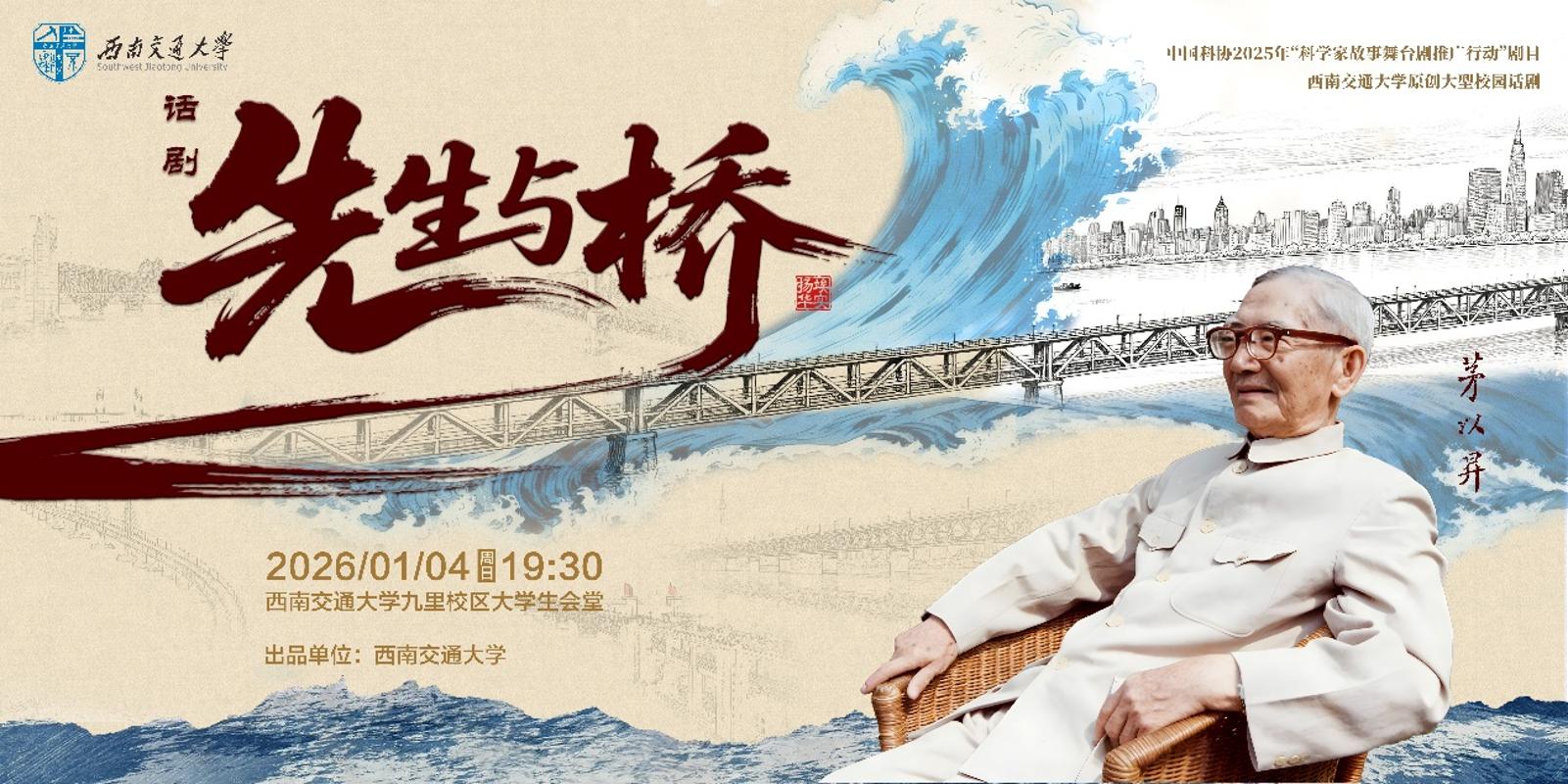 以时代之精神延续百年,以家国之情怀奔赴远方,为献礼茅以升先生诞辰130周年,中国科协“科学家故事舞台剧推广行动”剧目、西南交通大学原创大型校园话剧《先生与桥》首演正式定档。具体通知如下: