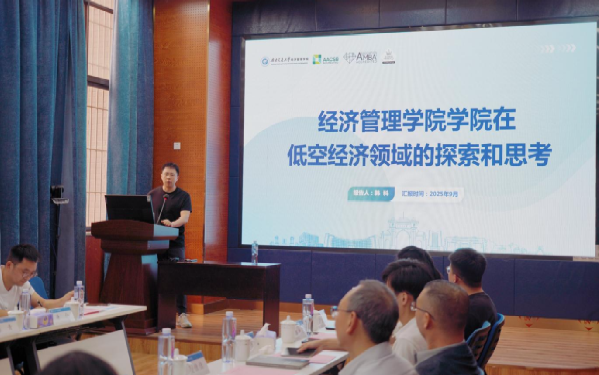 经济管理学院院长韩科聚焦“低空经济产业研究院及产学研合作情况”作专题介绍。他详细阐述经管学院在低空经济领域的研究定位、团队建设及产学研融合成果,重点分享研究院在产业政策研究、市场需求分析、企业合作对接等方面的实践经验,为两院协同推进低空经济方向研究提供参考。