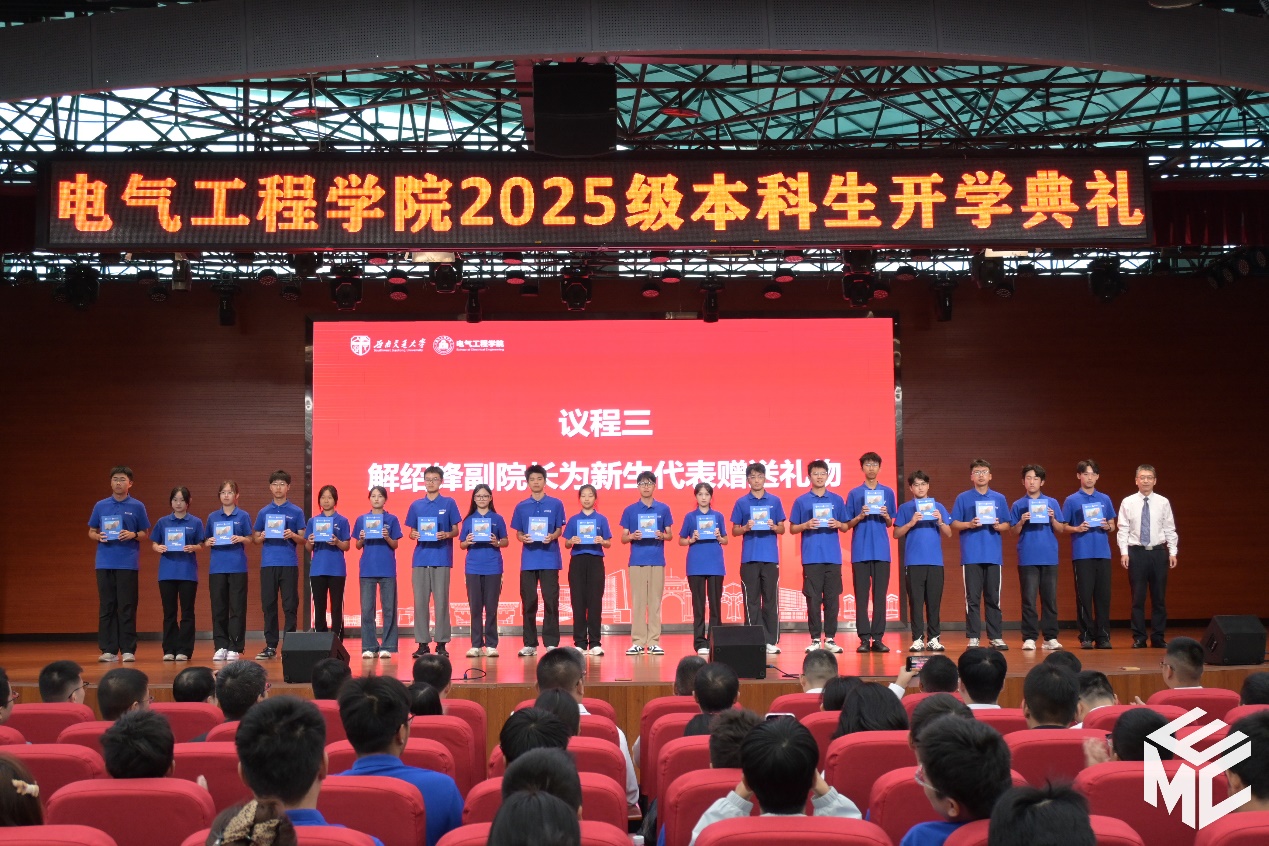 9月21日上午,“听电气故事,做优秀电气人”电气工程学院2025级本科生开学典礼在犀浦校区二食堂三楼大学生活动中心举行。电气工程学院院长马光同,党委书记王斌,党委副书记邢晓鹏,副院长解绍锋、杨平,副处级组织员魏振兴,国际化办学主管、电子信息工程系主任黄德青,电力工程系主任吴积钦,电工电子系主任严仲明,团委书记、纪委副书记张异,综合办公室主任樊兵兵,学生支持办公室主任张婷婷,本科教务员梁志,2025级本科生班导师、校外生涯导师、全体辅导员老师以及全体本科新生参加典礼。典礼由邢晓鹏主持。