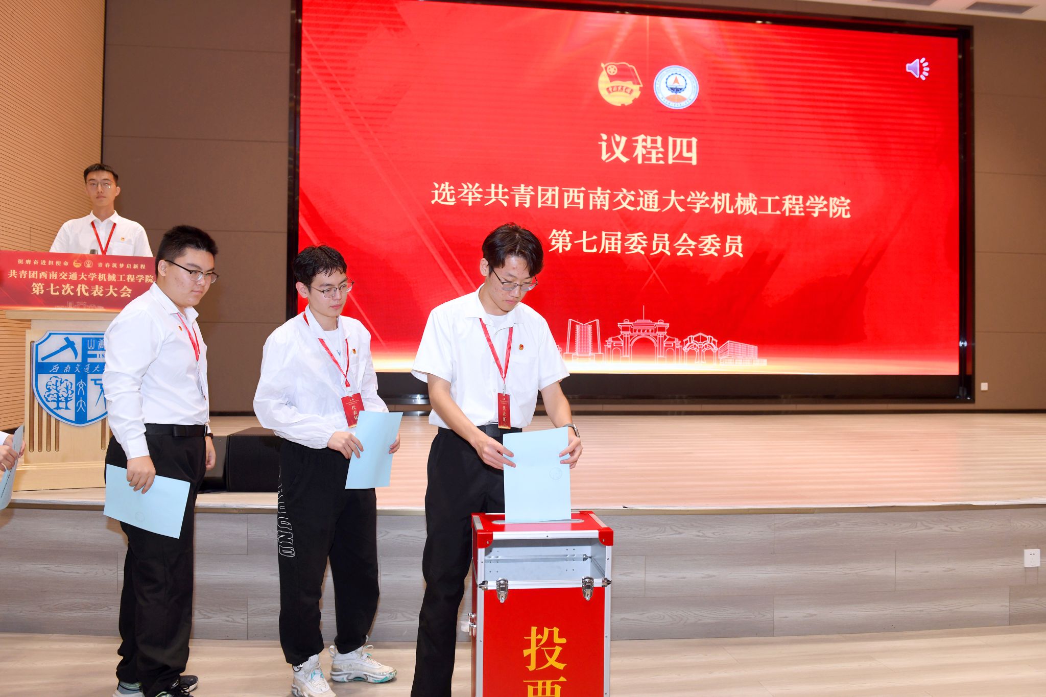 在大会第二次全体会议上,全体参会代表审议通过了《共青团西南交通大学机械工程学院第七次代表大会选举办法》《共青团西南交通大学机械工程学院第七次代表大会总监票人、监票人、总计票人、计票人名单》,并以不记名投票的方式选举共青团西南交通大学机械工程学院第七届委员会委员。