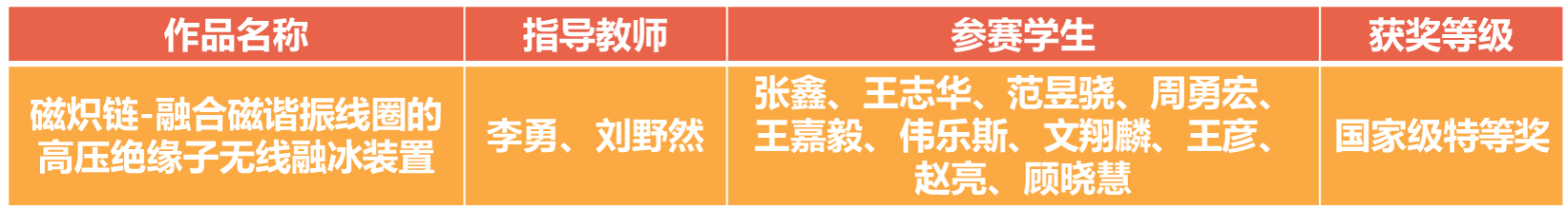 学院参赛团队结合学科优势,创新研发“磁炽链”无线融冰装置,为电网绝缘子防冰难题提供了创新方案。所设计装置基于电磁耦合原理,通过在绝缘子内部嵌入多级磁耦合线圈,并将各级磁耦合线圈产生的磁场能量实时转换为热能,从而实现融冰效果。相较于传统技术,所设计装置能够实现绝缘子全天候自动除冰,有效避免人工干预风险,具有除冰效果可靠、实时性高等特点。
