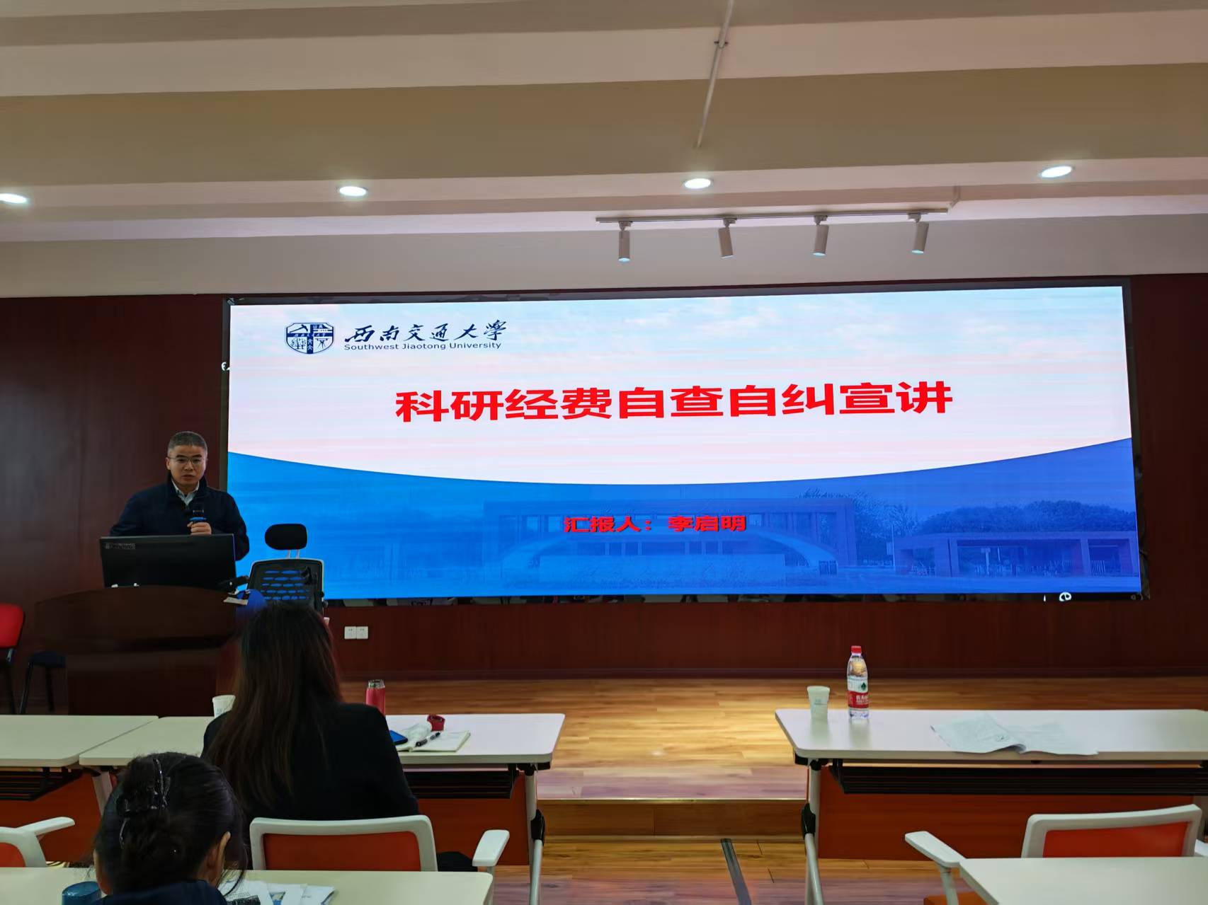心理中心副主任李启明从科研经费管理和本研毕业论文的指导工作两个方面进行了部署宣讲。李启明通报了高校科研经费使用管理中出现的一些不规范问题,并强调科研项目负责人应严格按照学校相关要求做好此次科研经费自查自纠工作,加强科研经费管理,确保经费使用合法、合规。另外在本研毕业论文指导方面,指导老师应切实履行好第一责任人的职责,重视选题把关,加强全过程指导,切实提升论文质量。