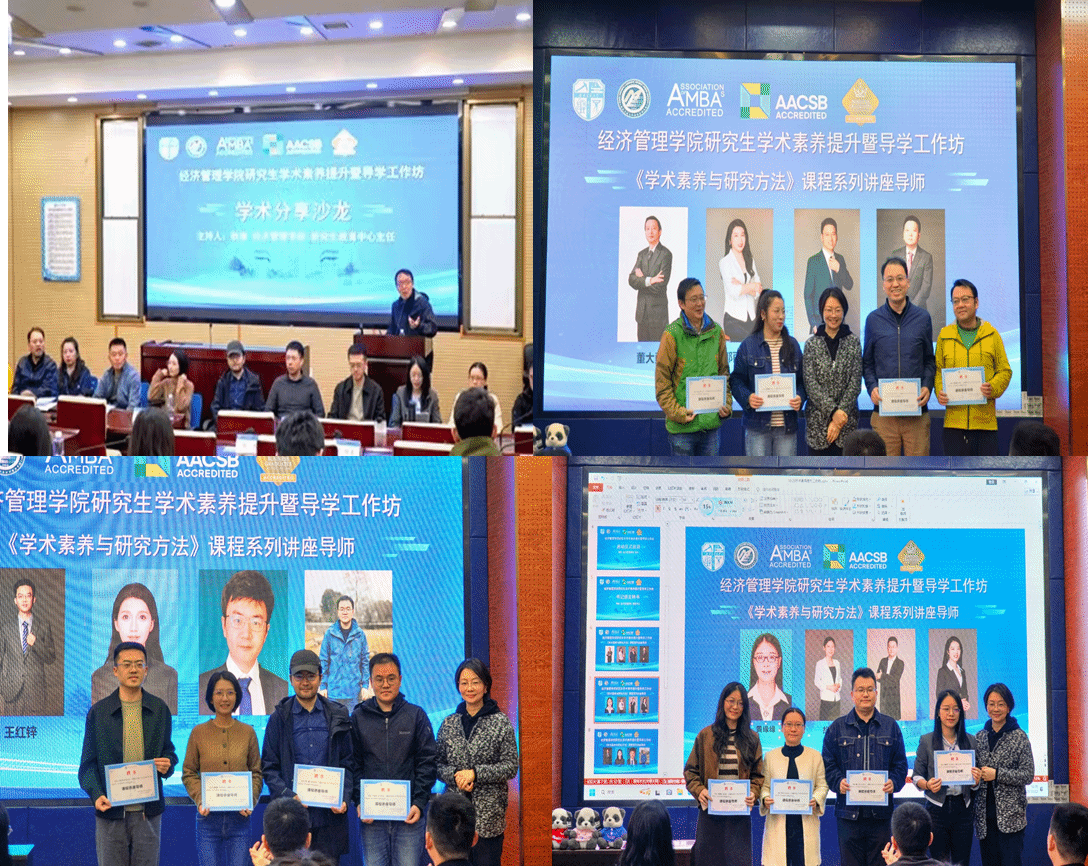 经济管理学院党委书记蒋佳为课程讲座导师颁发聘书,并对主讲《学术素养与研究方法》课程的讲座导师和参与活动的所有老师表示感谢。她表示,工作坊是学院立足于学生学术素养培养所建立的桥梁,是研究生同学超越课堂知识的平台,也是学习优秀科研理念、学术思维、研究方法的宝贵机会,期望同学们积极融入到与老师面对面交流的课堂中。