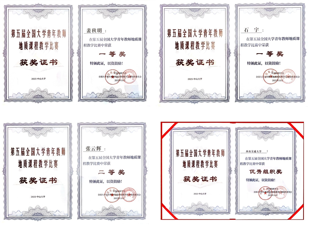 “全国大学青年教师地质课程教学比赛”由中国地质学会主办,是纳入“全国高校教师教学竞赛排行榜”的重要赛事,是全国最具权威性、专业性和影响力的高校地质类学科教学赛事,旨在培养青年教师爱岗敬业、严谨治学的态度,提升地质学科教学能力。地学学院始终秉持“科研为基、教学为本、科教融合、课程思政”的教育理念,高度重视青年教师教学能力培养,学校本科生院与教师发展中心给予了大力支持,获得了此次大赛的高度认可, 我校荣获“优秀组织奖”。
