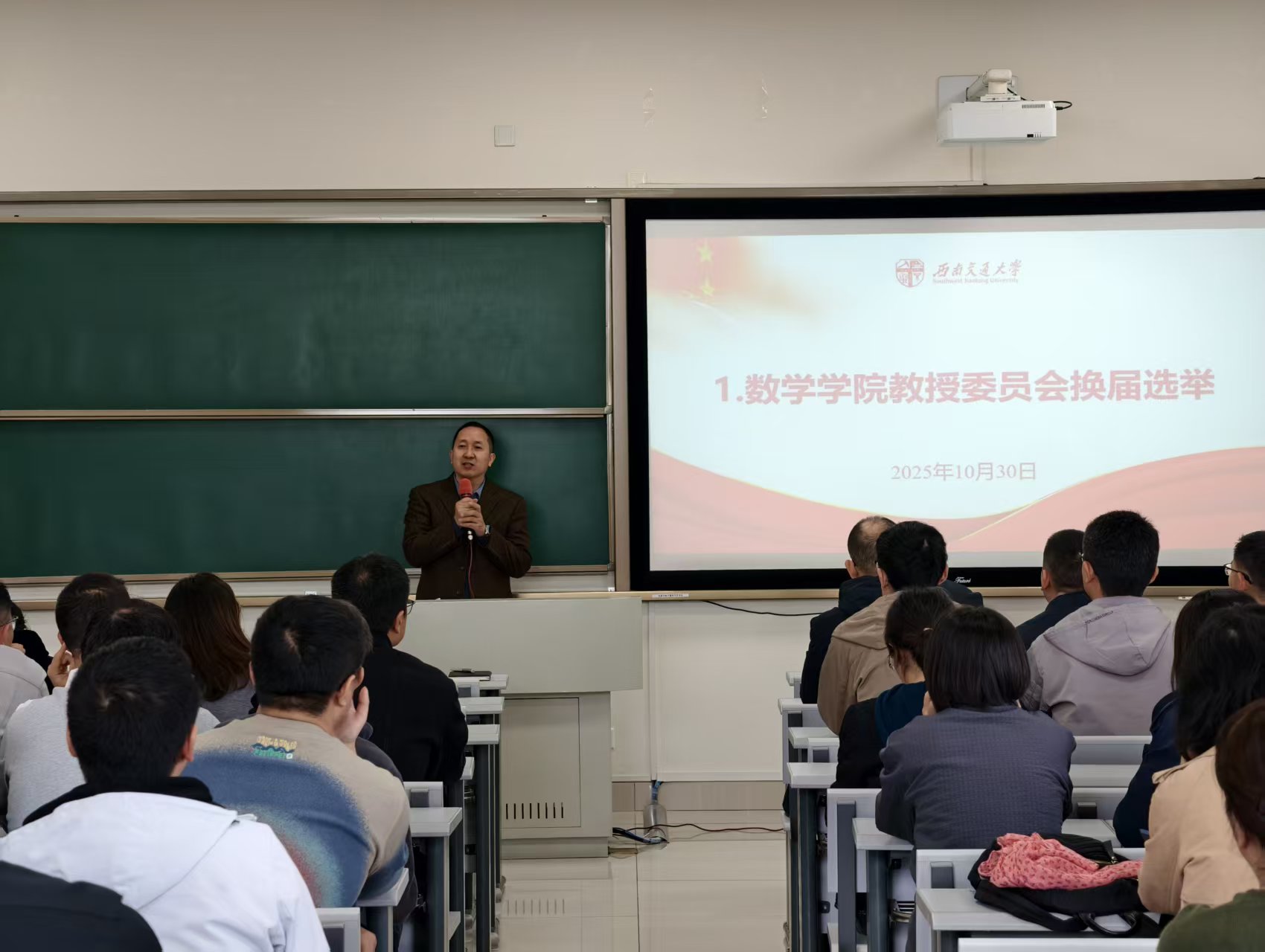 10月30日下午,数学学院教职工大会在犀浦校区X30610举行,学院院长杨晗主持会议。
