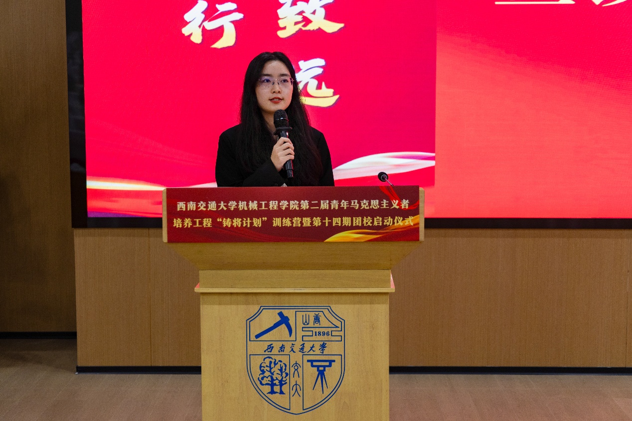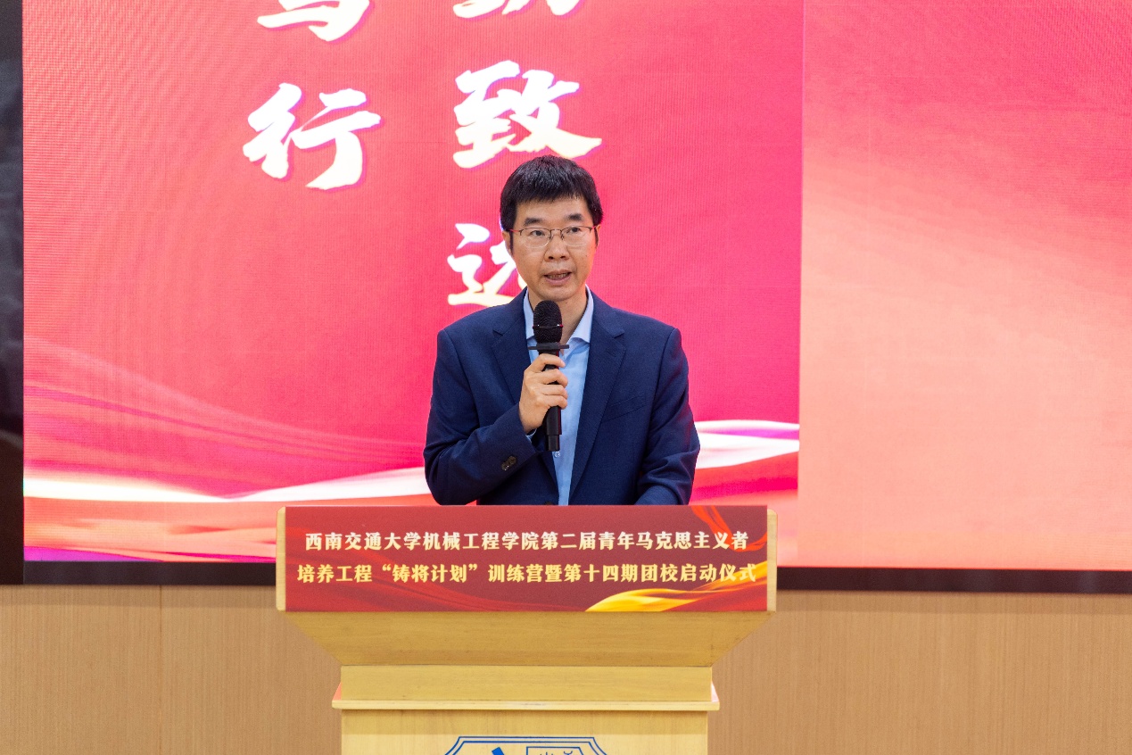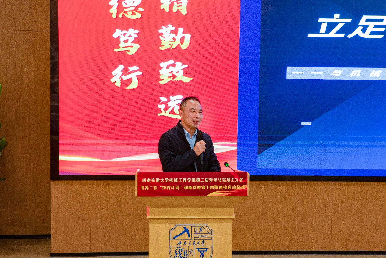 为深入贯彻落实党的二十大和二十届二中、三中、四中全会精神以及习近平总书记关于青年工作的重要思想,全面加强学生骨干队伍建设、提升学生骨干的综合素质与履职能力,10月30日,机械工程学院“第二届青年马克思主义者培养工程‘铸将计划’训练营暨第十四期团校启动仪式”在图书馆一号报告厅举行,中共成都市委党校业务指导处处长王磊,西南交通大学团委书记武俊,机械工程学院党委书记袁艳平、党委副书记沙晓雪、副处级组织员万宇及300余名学生骨干参加本次活动。