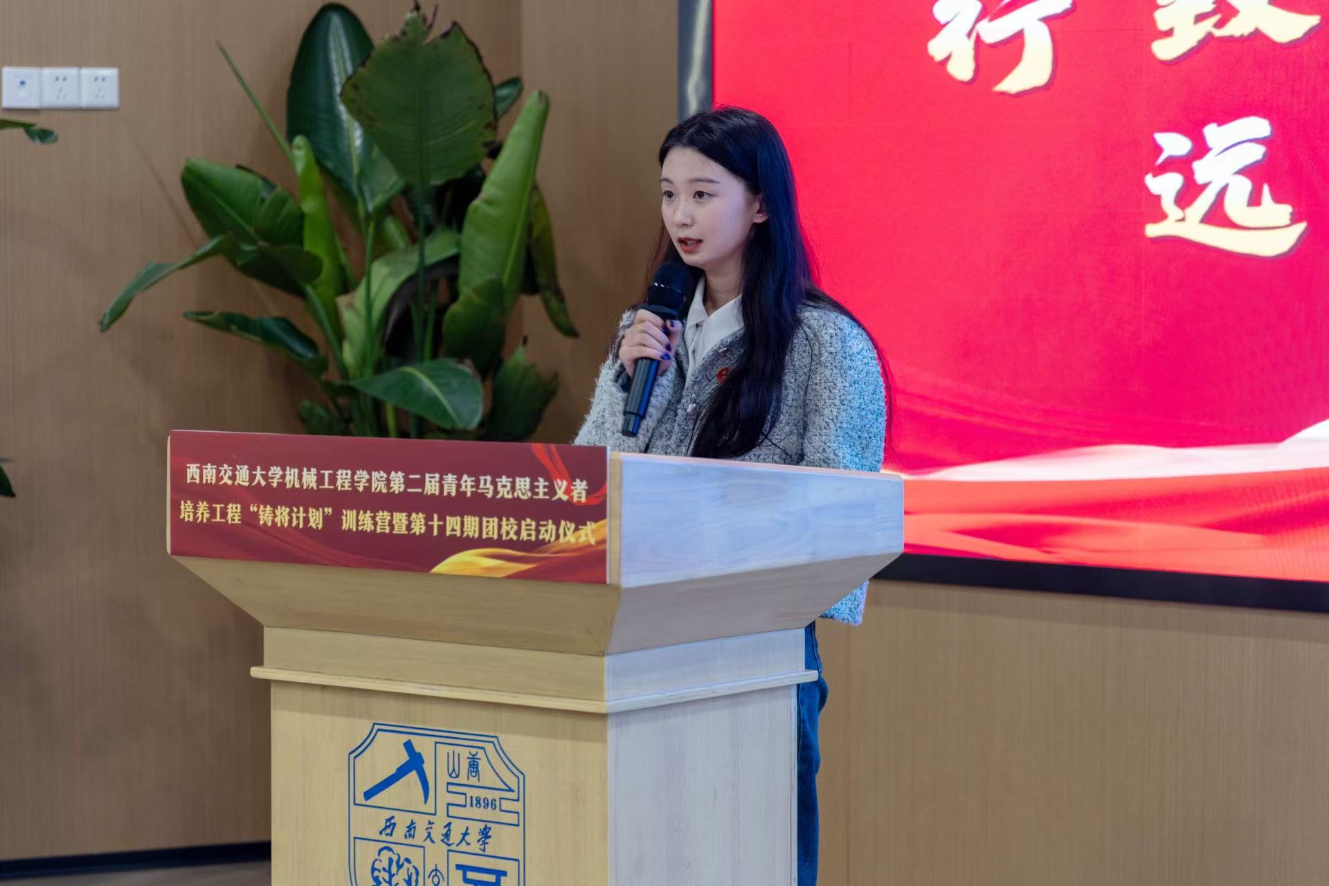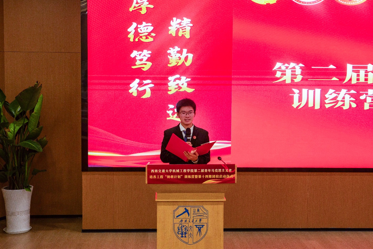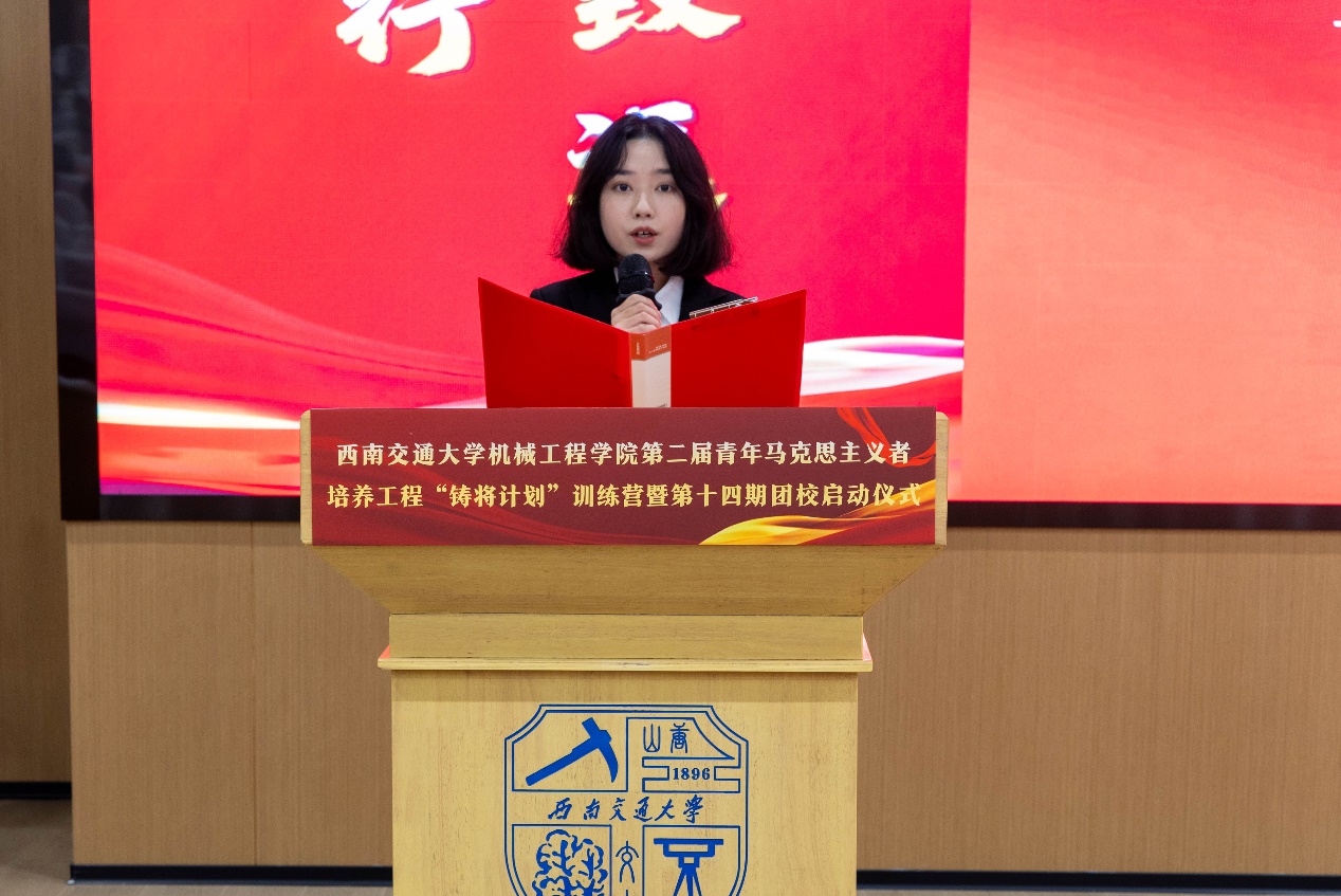 为深入贯彻落实党的二十大和二十届二中、三中、四中全会精神以及习近平总书记关于青年工作的重要思想,全面加强学生骨干队伍建设、提升学生骨干的综合素质与履职能力,10月30日,机械工程学院“第二届青年马克思主义者培养工程‘铸将计划’训练营暨第十四期团校启动仪式”在图书馆一号报告厅举行,中共成都市委党校业务指导处处长王磊,西南交通大学团委书记武俊,机械工程学院党委书记袁艳平、党委副书记沙晓雪、副处级组织员万宇及300余名学生骨干参加本次活动。