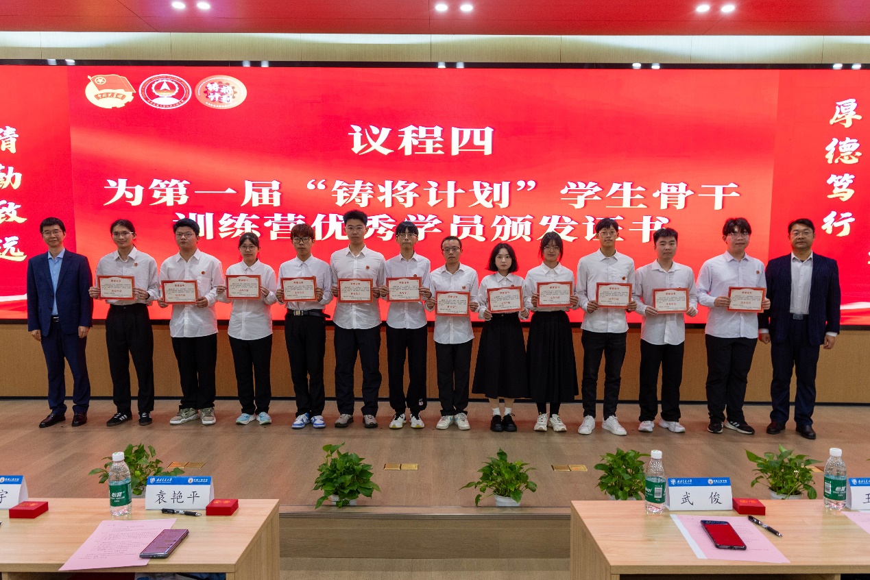 第一届“铸将计划”骨干训练营学员代表、2022级机械设计制造及其自动化专业骆月桐代表第一届参培学员发言,她分享了自己在培训过程中的收获和感悟,号召大家以此次培训为新的起点,保持空杯心态,积极投身实践,热心服务同学,成长为眼中有光、心中有责、脚下有力的新时代青年先锋。