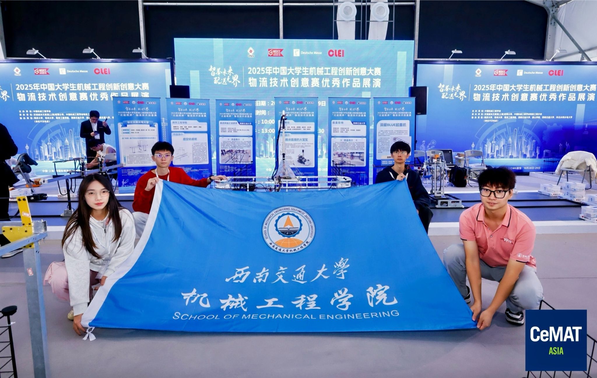 机械工程学院吴晋迪、张晓松、唐千惠、张宸玮、常益同学的作品《深藏BLUE起重机》,荣获2025年中国大学生机械工程创新创意大赛——“北起院”杯物流技术创意赛国家级一等奖,并受邀在亚洲国际物流技术与运输系统展览会的优秀作品展演区进行展示。在中国机械工程学会的支持下,本次大赛的优秀作品首次登上工业联展的国际平台进行展示。该展区集中呈现了物流技术创意赛的成果,彰显了当代大学生勇于探索、敢于创新的精神风貌。 此次参展为学生创意作品对接产业市场需求搭建了桥梁,标志着“产学研”协同创新迈上了新台阶。