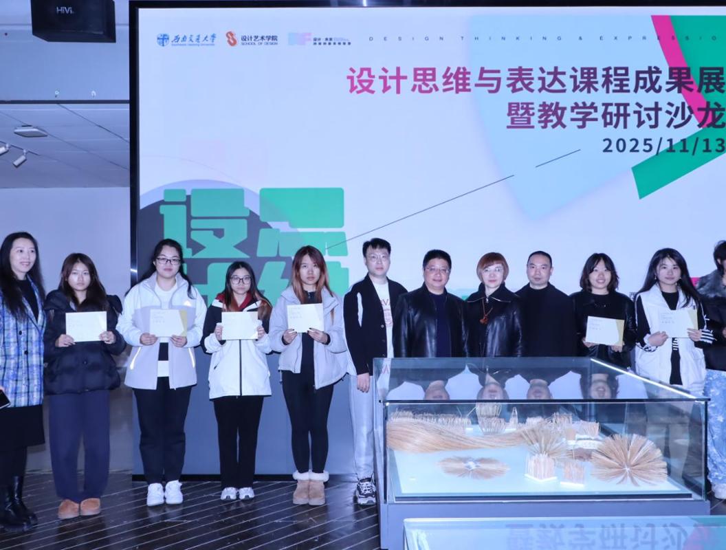 11月13日下午,由西南交通大学设计艺术学院和“设计·未来”创新创意美育基地联合主办的设计思维与表达课程成果展暨教学研讨沙龙在犀浦校区8号教学楼一楼中庭启幕。