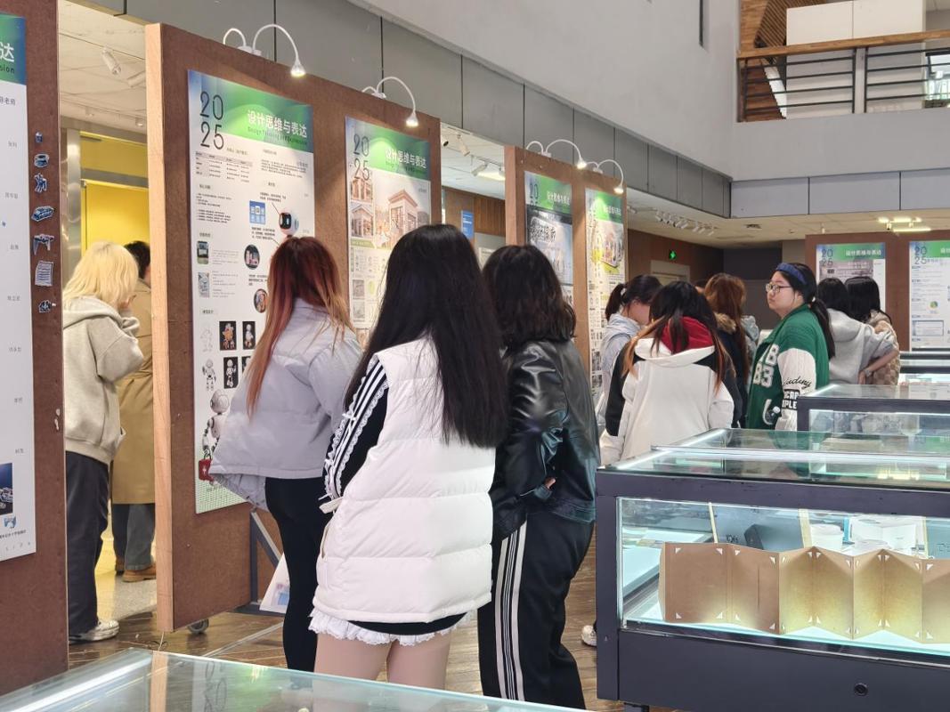 作为一门自2020年起即为设计新生奠定思维根基的核心课程,《设计思维与表达》始终秉承“文化自信”与“各美其美、美美与共”的育人理念,致力于培养兼具国际视野与中国情怀的创新人才。本次展览正是这一教学理念的生动映照,每一件作品都记录了同学们从启蒙到跃迁的成长轨迹。展厅内,光影交织,创意流动,前来观展的师生们穿梭其间,或驻足细品,或交流心得,充分感受到了新生代设计力量的无限潜力。