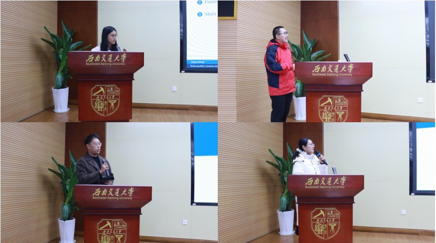 四川大学刘淑君教授作题为《Black-Box Optimization: An Overview of Stochastic Extremum Seeking》的专题报告;四川大学刘建军教授作题为《哈密顿偏微分方程解的长时间稳定性》的专题报告;西南交通大学Syed Omar Shah博士后作题为《Existence, Uniqueness,Stability and Controllability Analysis of Dynamical Systems》的专题报告。报告聚焦数学前沿与交叉应用,涵盖随机优化、哈密顿偏微分方程及动力系统分析等方向。